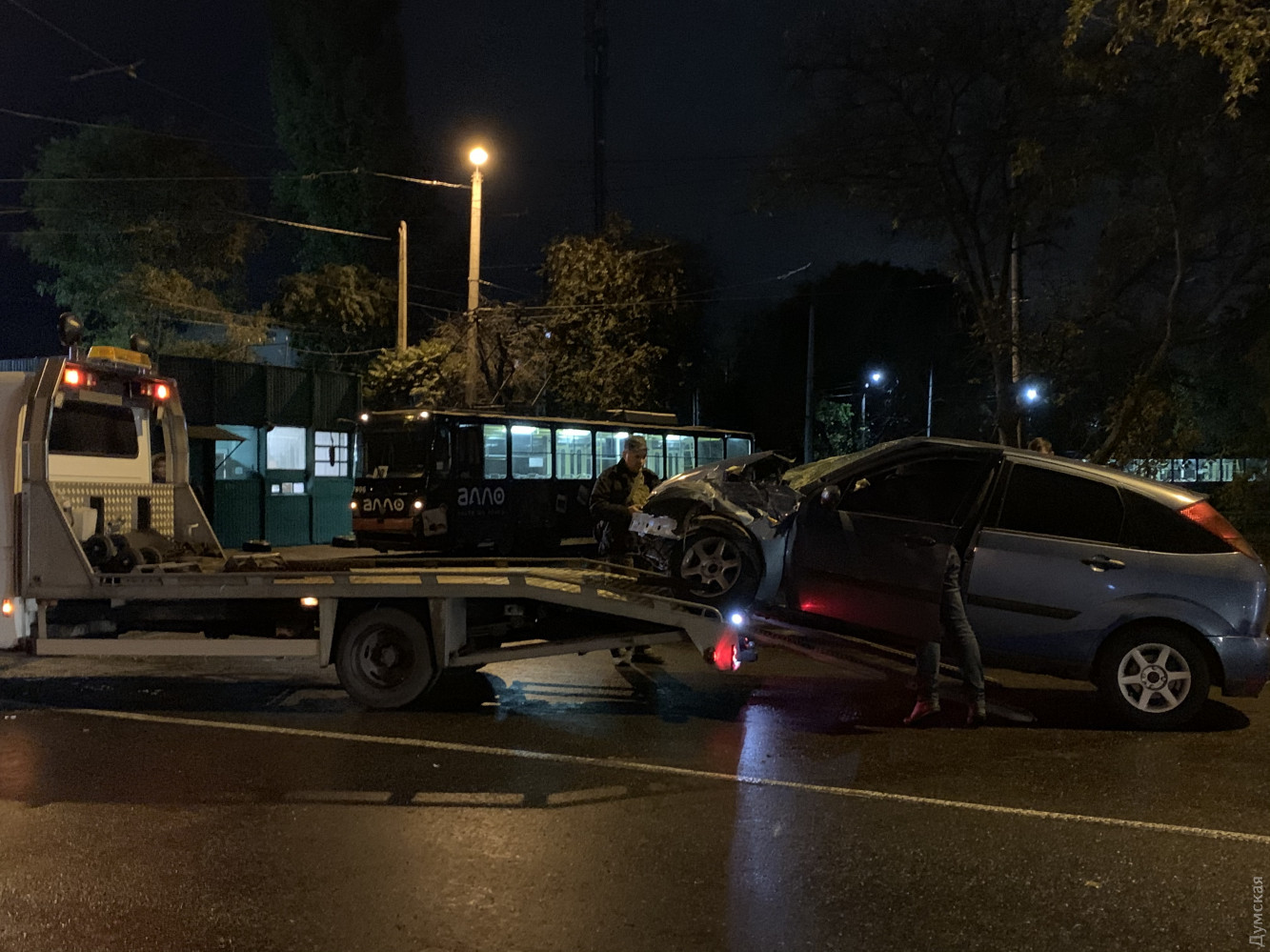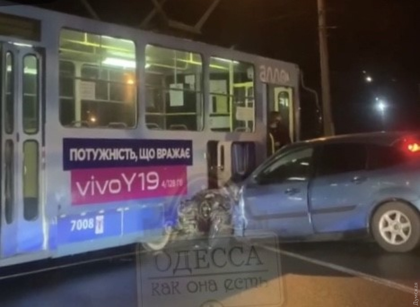 Легковой автомобиль Ford Focus врезался в трамвай №10, который двигался по кольцу на конечную остановку маршрута на Ицхака Рабина, передает корреспондент «Думской».