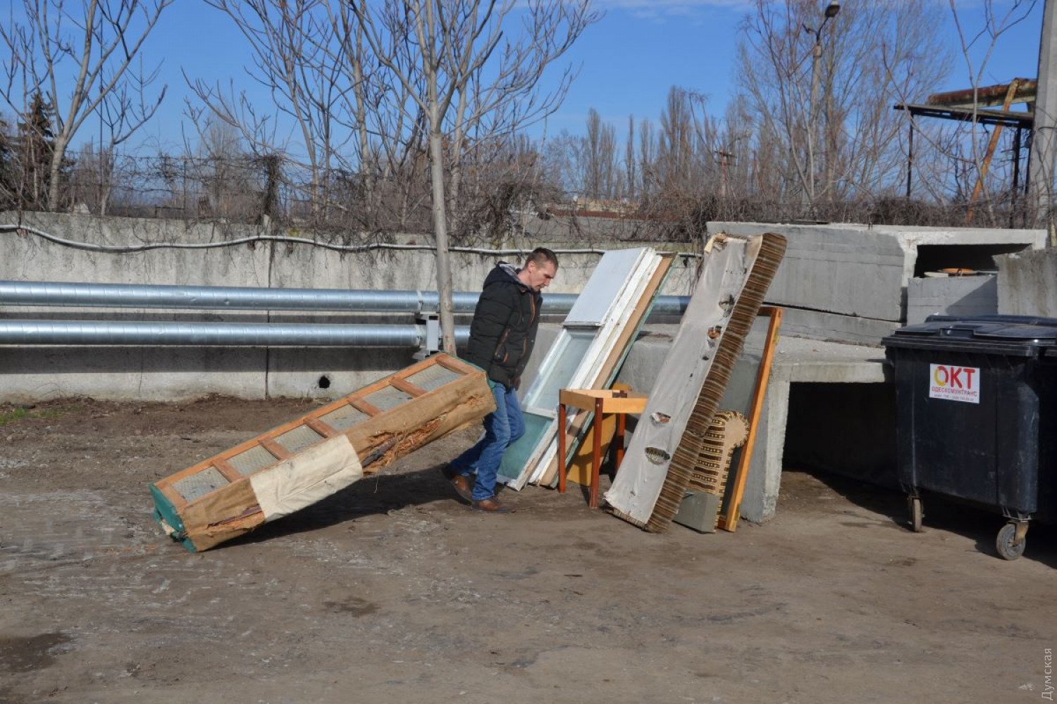 Начиная с 15 февраля, на улице Варненской, 27 работает площадка, куда одесситы могут свозить ненужный хлам. Уже в первый день работы горожане привезли сюда негодный бойлер, поломанный стол, прохудившийся диван, а также множество элементов, которые когда-то были мебелью. Приносили в руках и привозили машинами, а взамен получали наклейки и магнитики на холодильник с надписью «Я делаю Одессу чище».