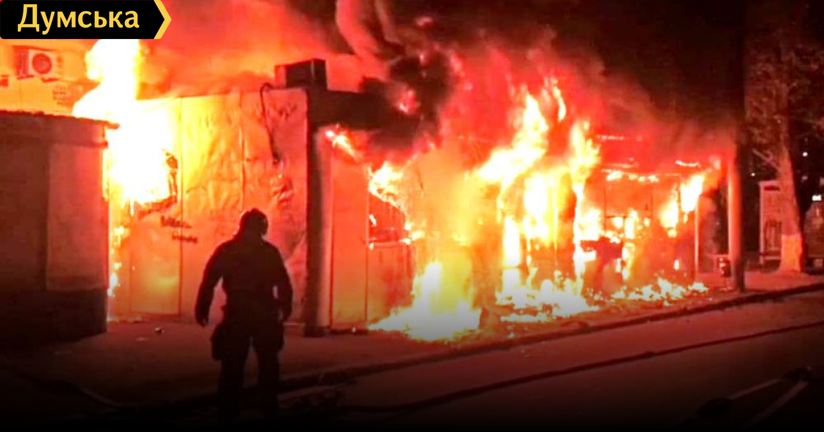 На Толбухина дотла сгорел павильон с фаст-фудом, повреждены соседние магазины и газетный киоск