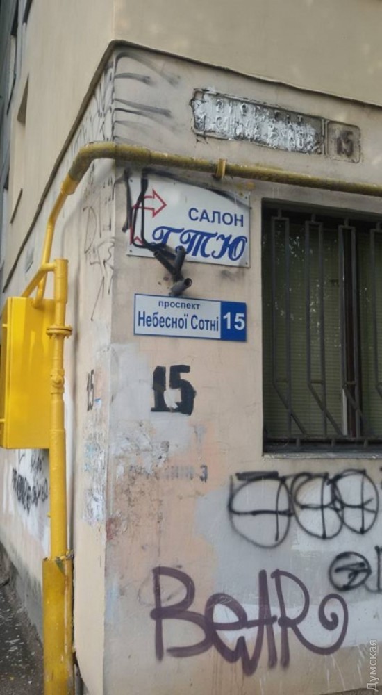 Спустя год после того, как бывший губернатор Одесской области Михаил Саакашвили распорядился декоммунизировать некоторые улицы города, коммунальщики начали обновлять соответствующие адресные таблички. Об этом сообщает одесская организация ВО «Свобода» в Facebook. Новые указатели появились на проспекте Небесной сотни (бывший Маршала Жукова), улицах Ивана и Юрия Лип (бывшей Гайдара) и Леонтовича (бывшей Белинского).