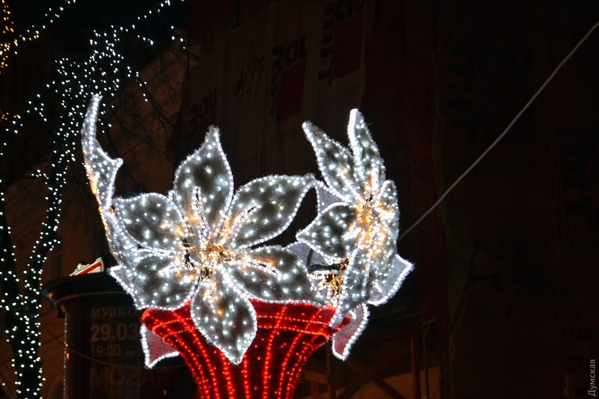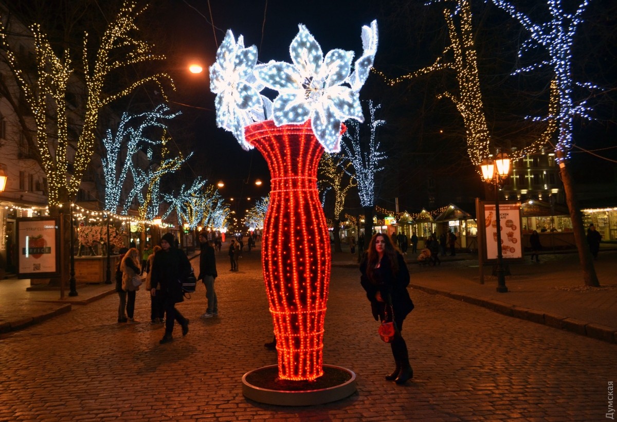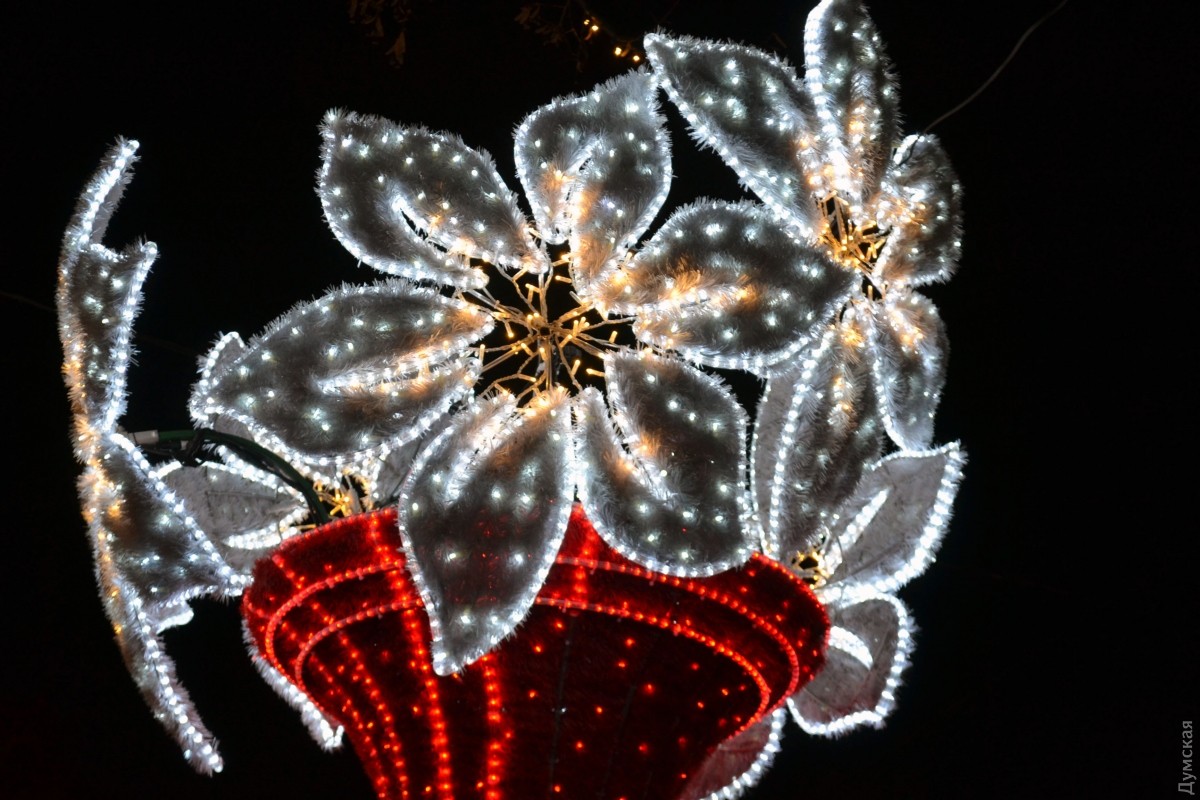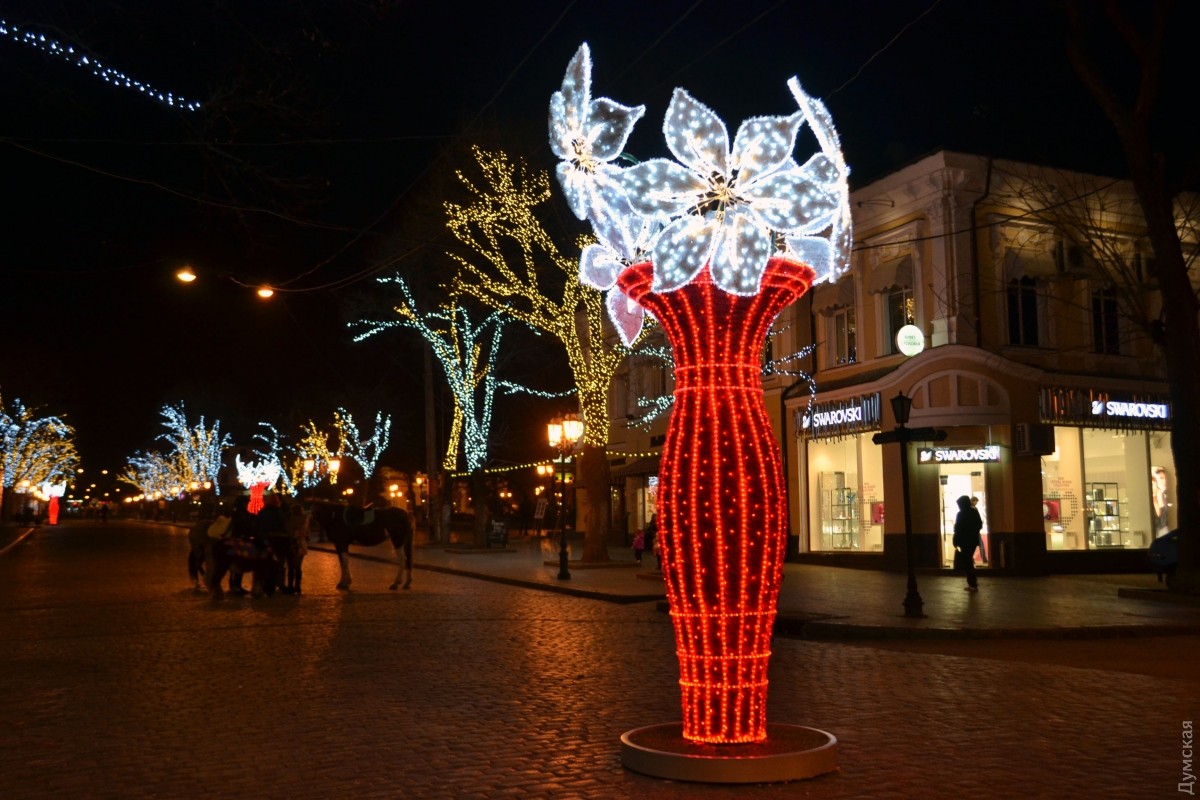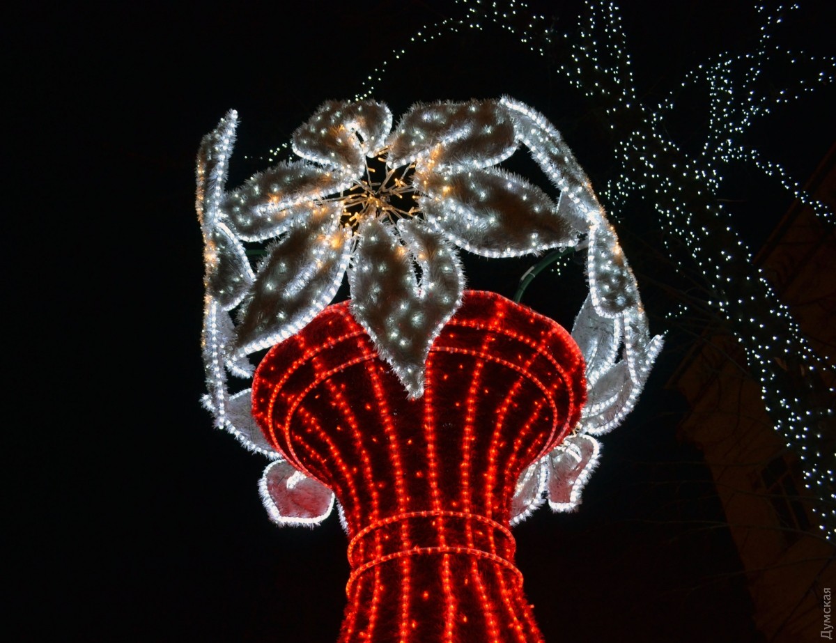 К Женскому дню на Дерибасовской появились новые светодиодные фигуры. На сей раз это красные вазы с белыми цветами, передает корреспондент «Думской».