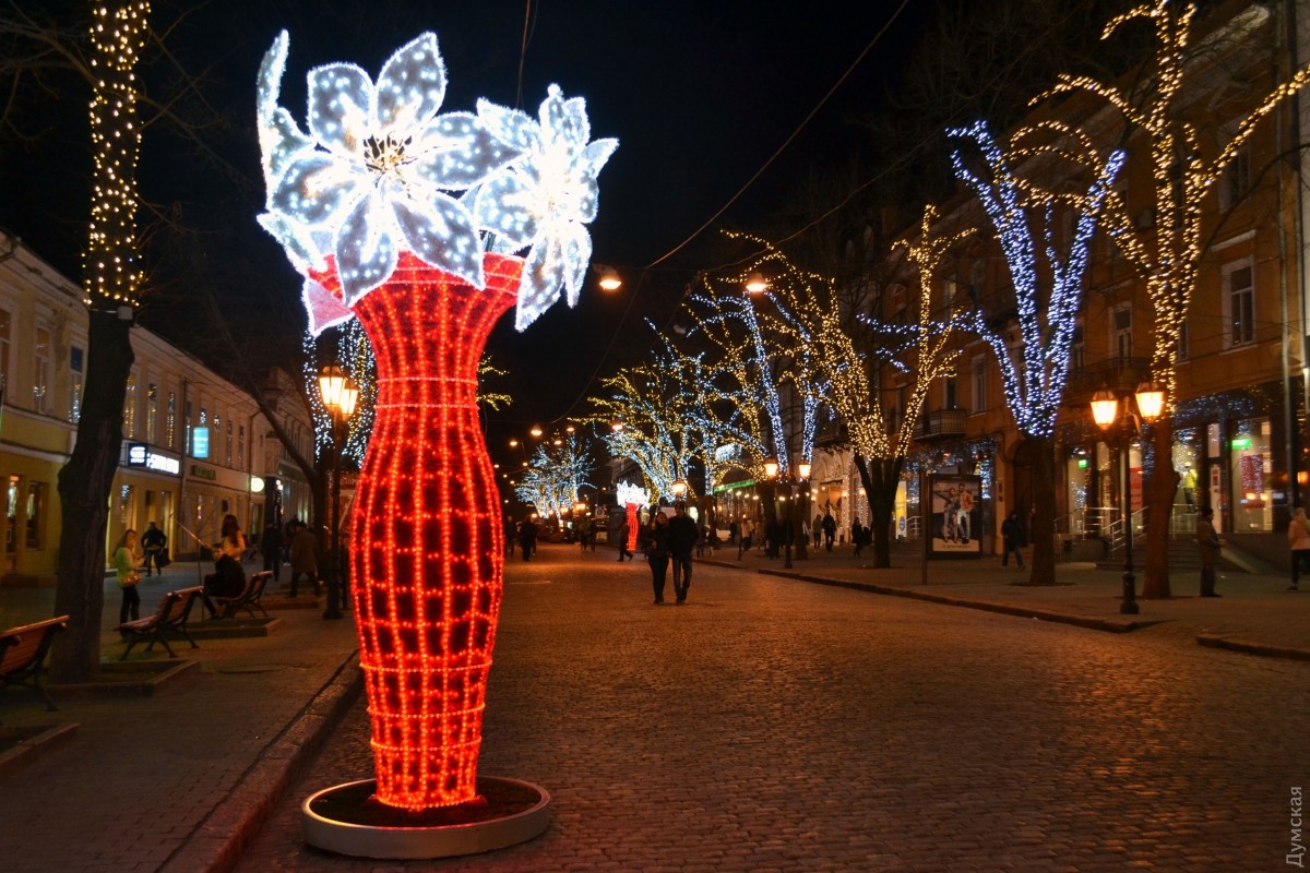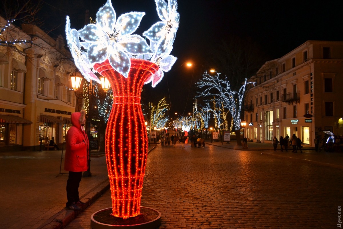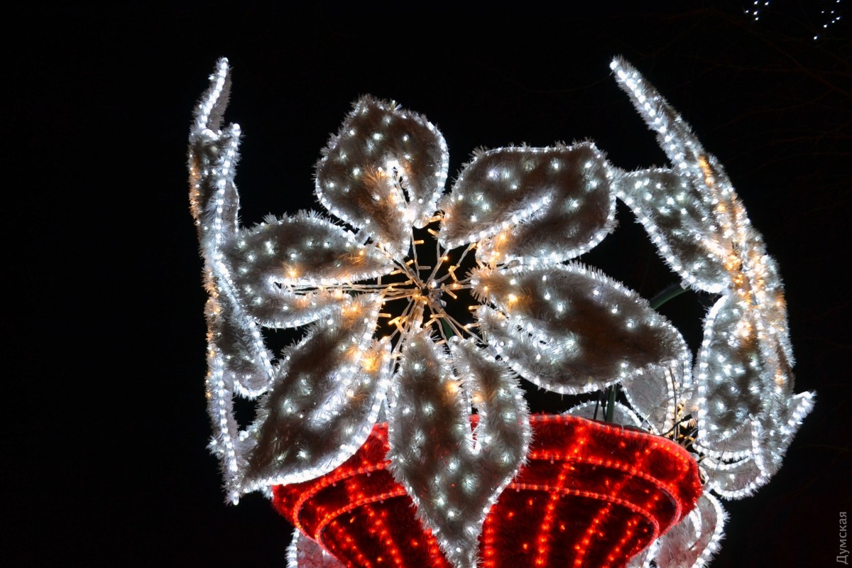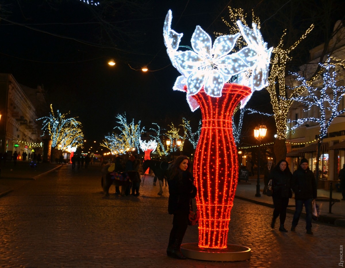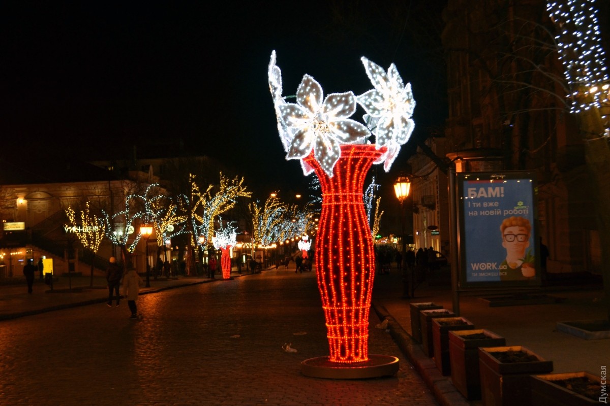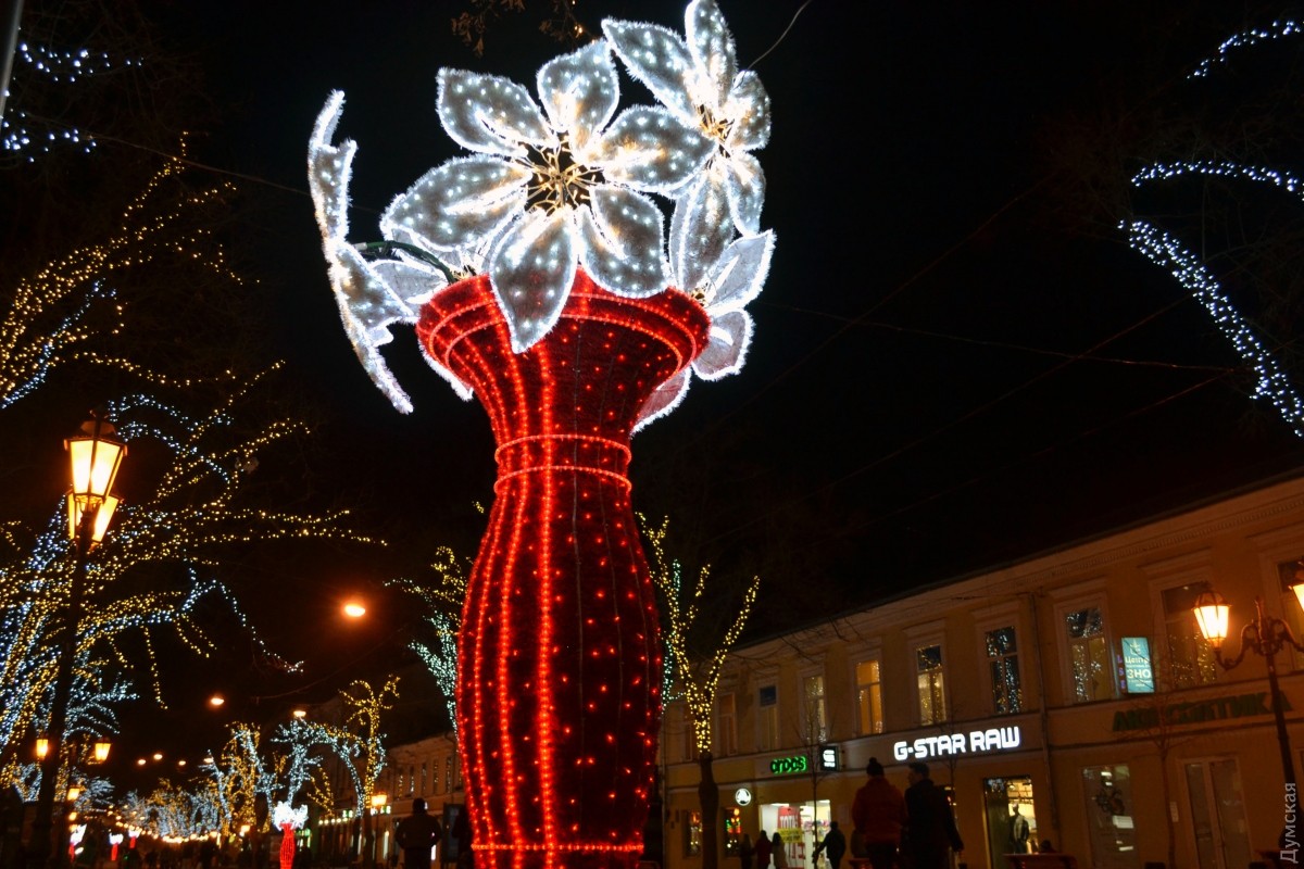 К Женскому дню на Дерибасовской появились новые светодиодные фигуры. На сей раз это красные вазы с белыми цветами, передает корреспондент «Думской».