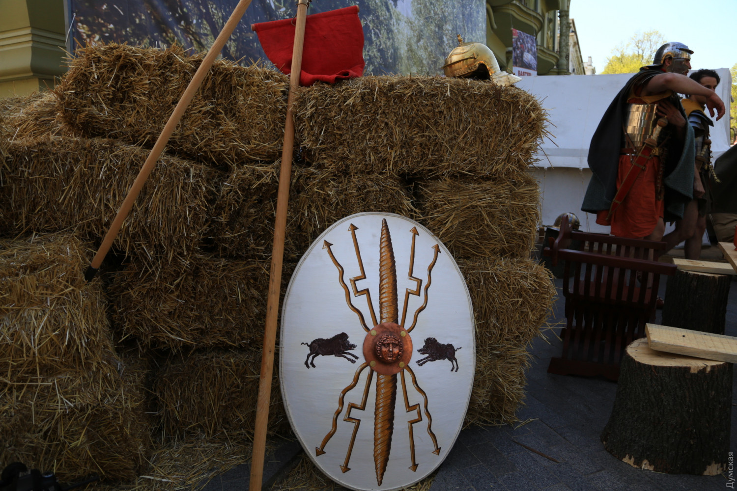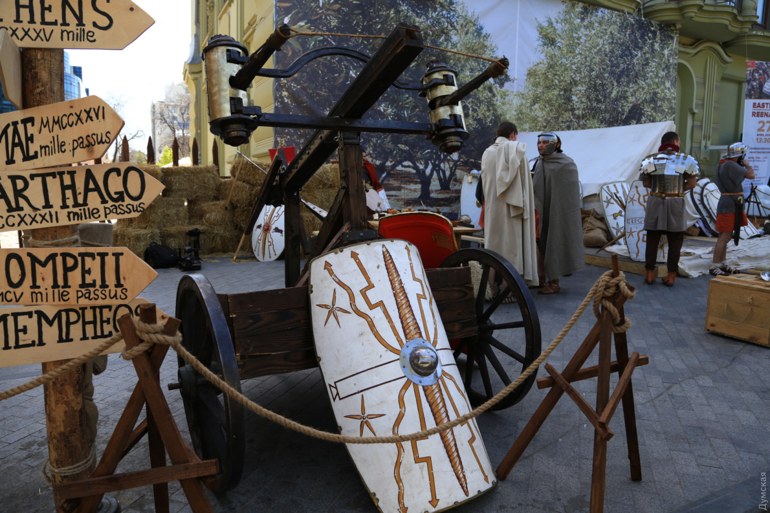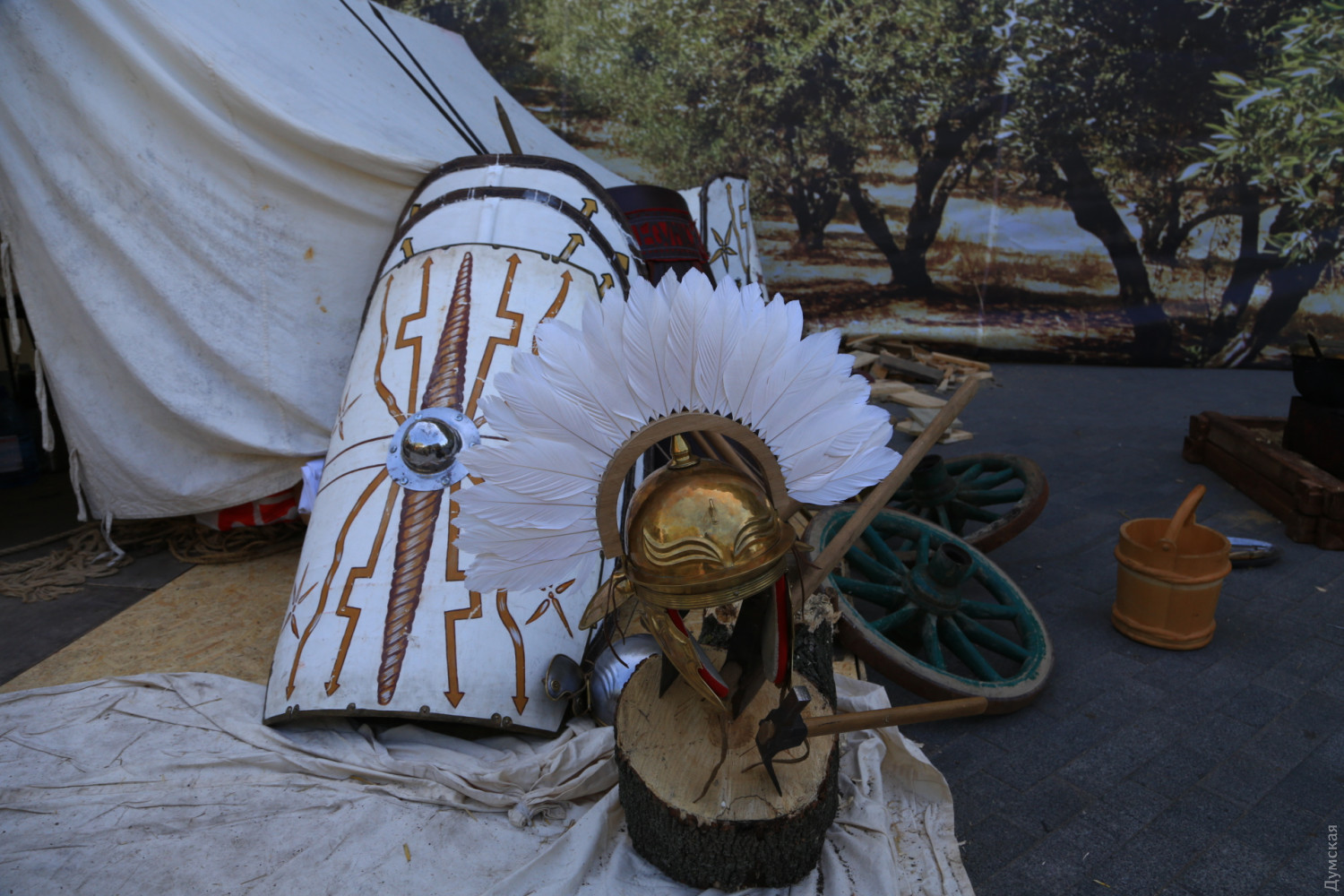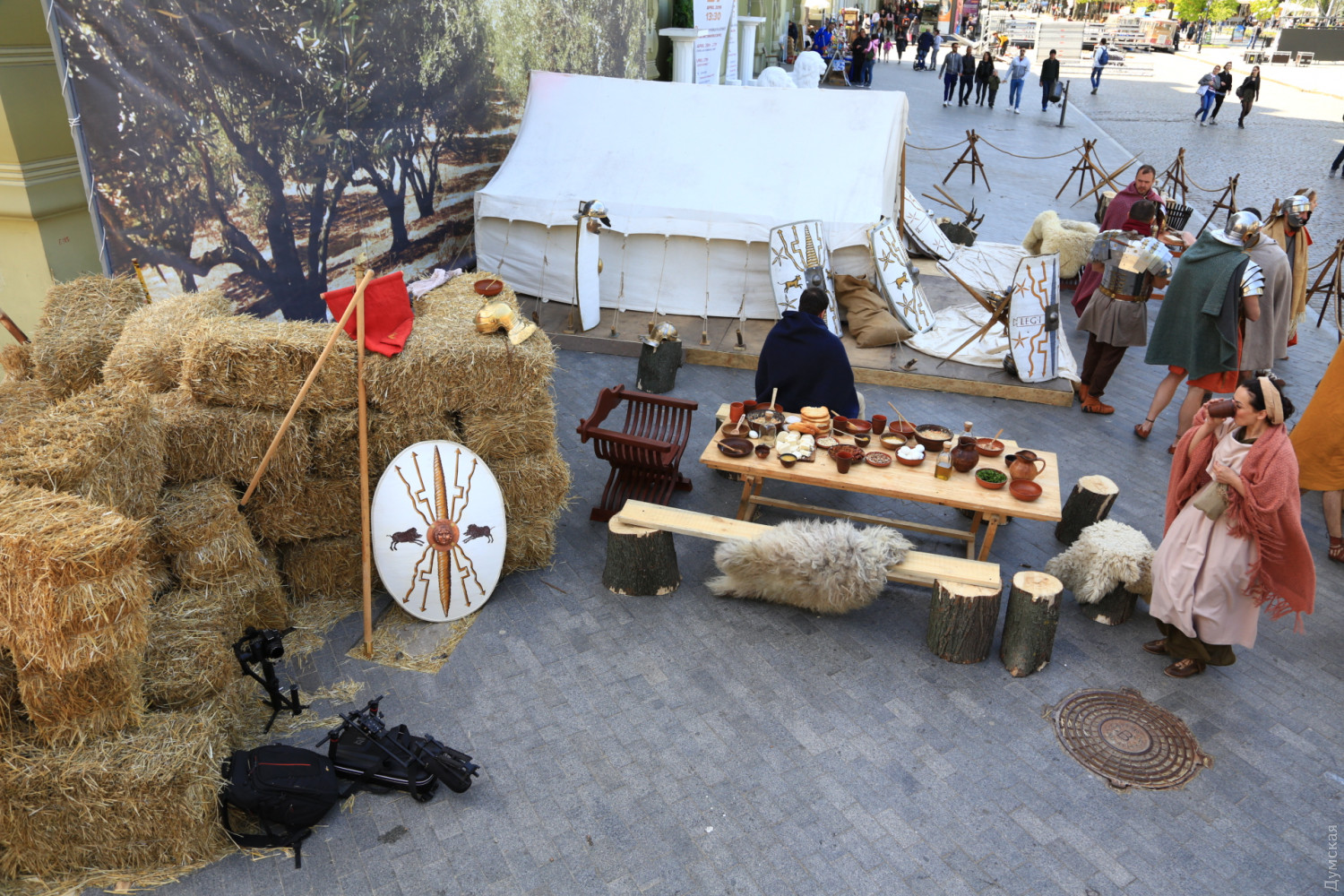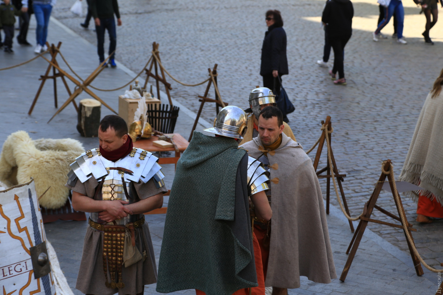 Вексилляция римских войск провинции Нижняя Мезия (Vexillatio Exercitus Moesiae Inferior) вновь встала лагерем на главной улице Одессы. Как передает корреспондент «Думской», легионеры и сопровождающие их люди, преимущественно симпатичные девушки (маркитантки?), расположились у гостиницы «Большая Московская». Это подготовка к традиционной пасхальной реконструкции, которая начнется завтра днем — более 400 актеров воссоздадут последний путь Иисуса Христа. Сегодня легионеры просто занимаются обычными повседневными делами: чистят оружие, чинят одежду, готовят на костре пищу. Едят за большим деревянным столом. Меню самое простое, солдатское — похлебка, ячменные лепешки с сыром, вино. «Мы стараемся рассказать одесситам, что у нашего города большая, интересная история, которой больше двух тысячелетий. Городу с именем Одесса 225 лет, но до него на этой территории было несколько античных городов. В первые годы нашей эры в древнегреческих городах Северного Причерноморья стояли римские гарнизоны, поэтому наше сегодняшнее присутствие здесь не случайно», — пояснил «Думской» один из организаторов реконструкции, вице-президент благотворительного фонда «Добрый самарянин» Денис Сердиченко. Вексилляция — это небольшое подразделение, действовавшее в отрыве от основных сил легиона. Обычно вексилляции несли гарнизонную или патрульную службу. Нижняя Мезия — римская провинция, в состав которой входили территории современных Болгарии, Румынии частично Сербии и юга Украины. СМЕРТЬ РОСІЙСЬКИМ ОКУПАНТАМ! Помітили помилку? Виділяйте слова з помилкою та натискайте control-enter |
