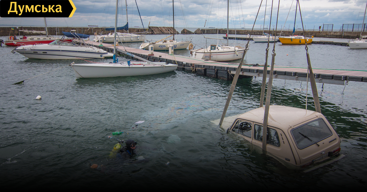 Затонувший автомобиль обнаружили сегодня возле причала Черноморского яхт-клуба в Отраде.