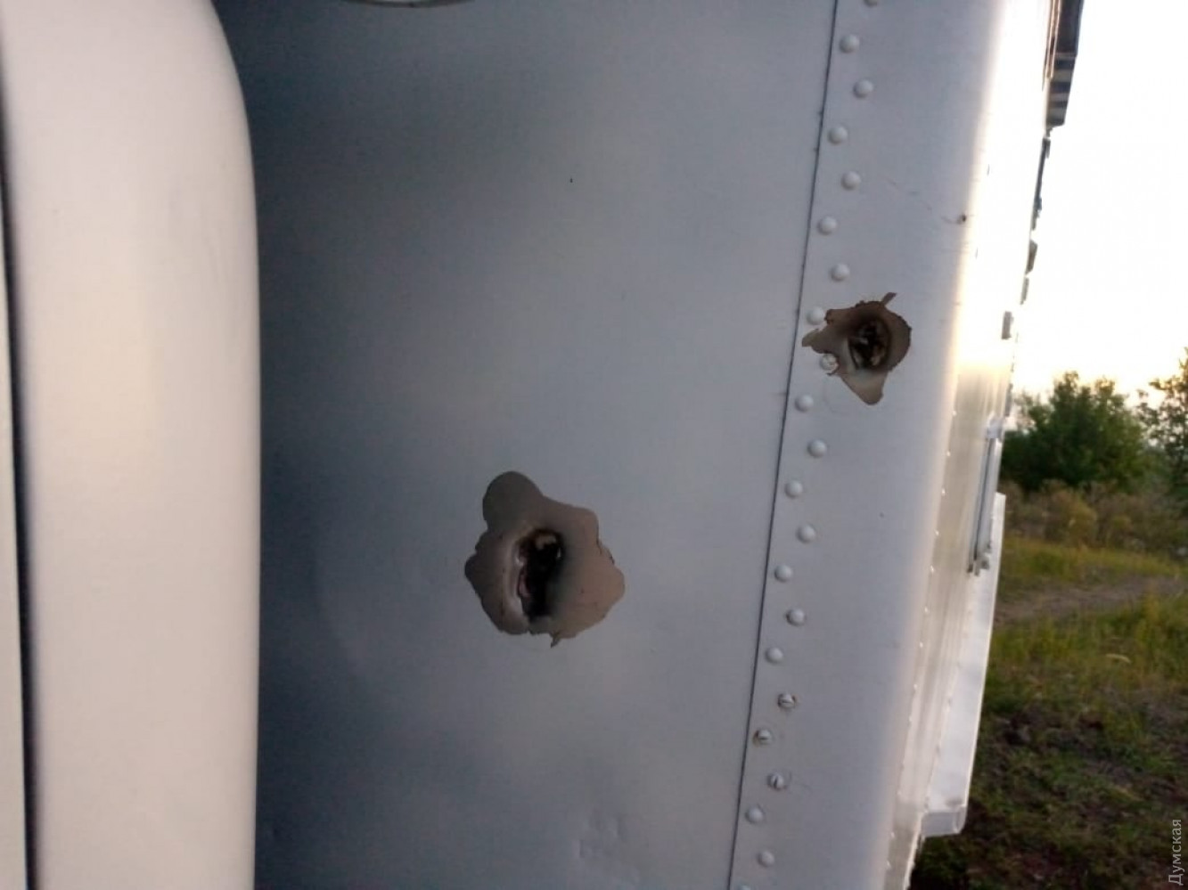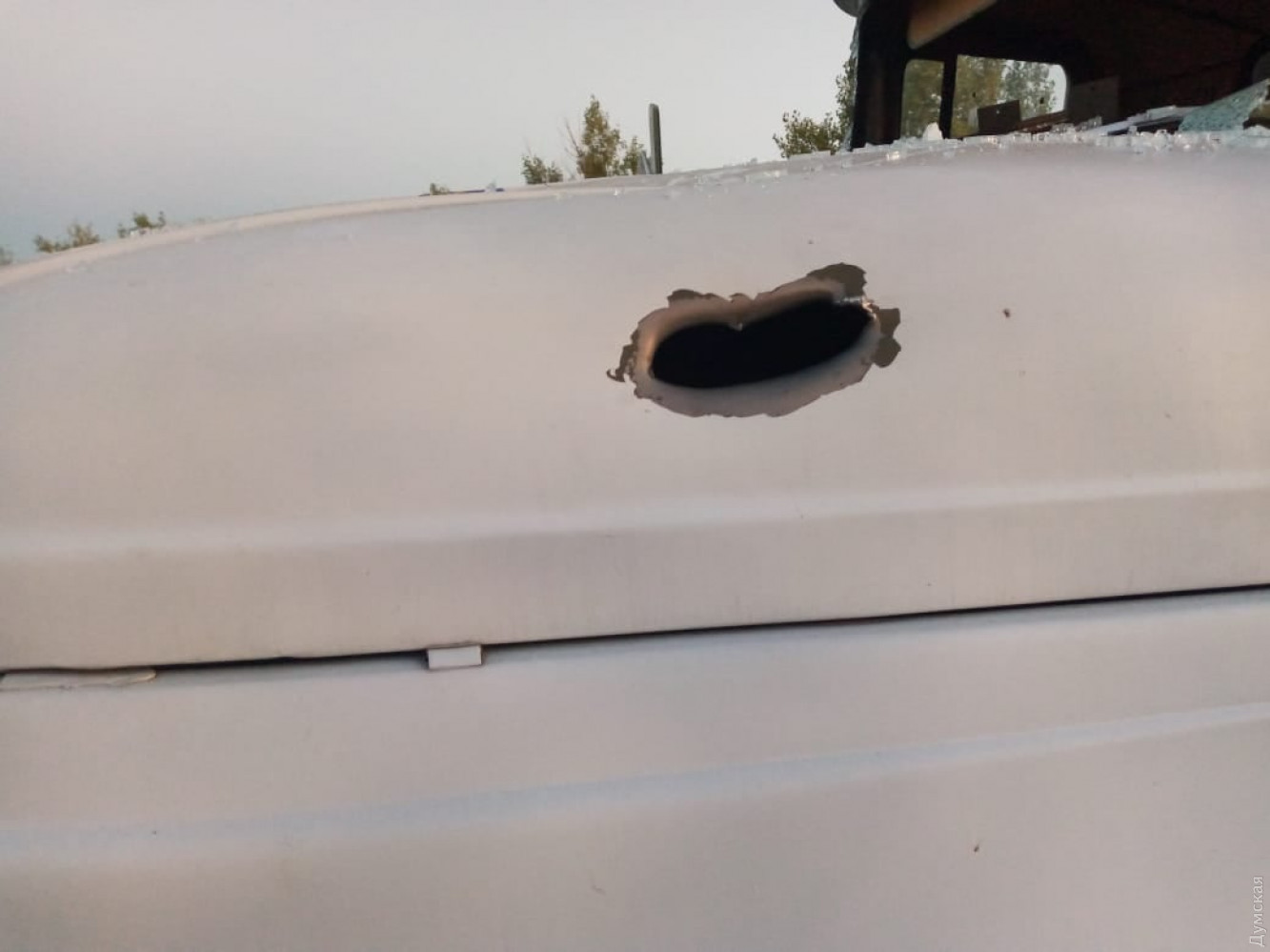 Автомобіль отримав осколкові ушкодження кабіни, кузова і коліс. Крім того, на прилеглій ділянці були помічені розриви.