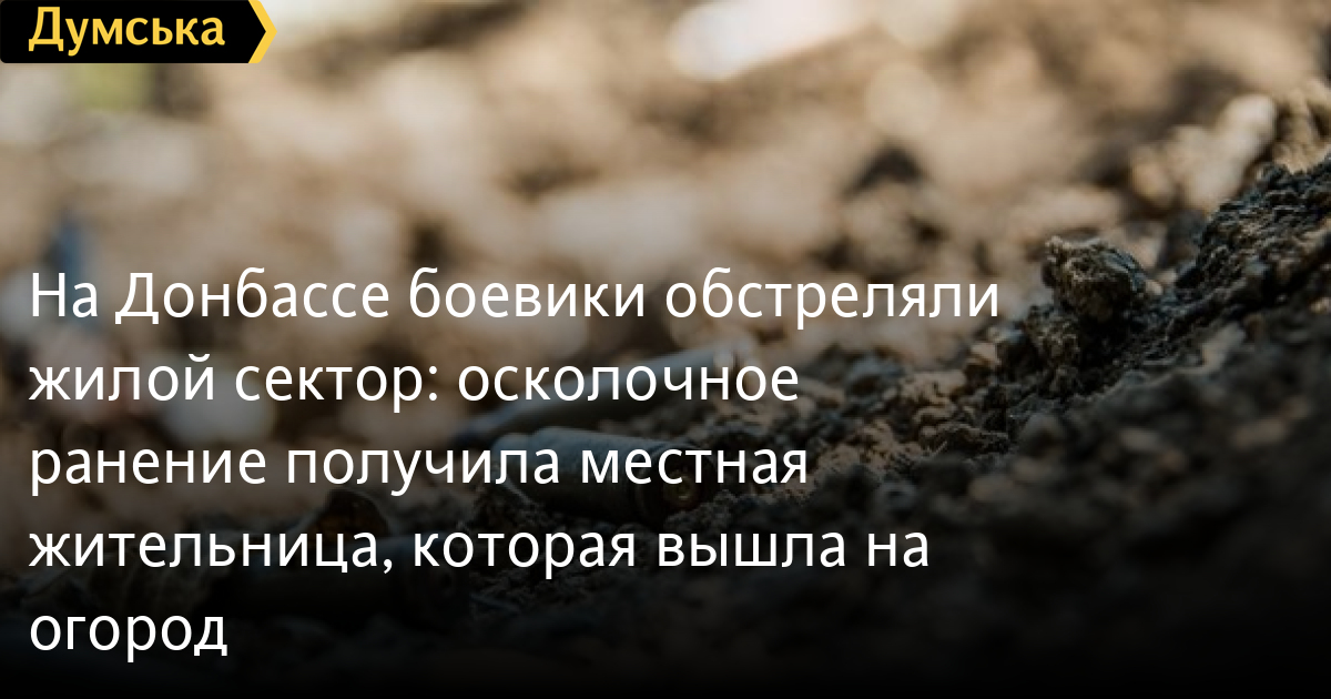 На Донбассе боевики обстреляли жилой сектор: осколочное ранение получила местная жительница, которая вышла на огородВооруженные формирования Российской Федерации открыли огонь по населенному пункту Верхнеторецкое Донецкой области, что неподалеку от линии разграничения. Как сообщили в пресс-центре ООС, в результате обстрела ранена местная жительница. «Сегодня, 4 апреля, около 17:00, вооруженные формирования Российской Федерации в очередной раз открыли огонь по населенному пункту неподалеку от линии разграничения. Из станковых противотанковых гранатометов оккупанты обстреляли жилой сектор поселка Верхнеторецкого, значительно удаленного от позиций Объединенных сил. В результате разрыва гранаты получила осколочное ранение в ногу местная жительница гражданка Д., которая в это время находилась на приусадебном участке собственного дома. Женщину доставили в городскую больницу Торецка и оказали квалифицированную медицинскую помощь», — говорится в сообщении штаба. СМЕРТЬ РОССИЙСКИМ ОККУПАНТАМ! Заметили ошибку? Выделяйте слова с ошибкой и нажимайте control-enter |