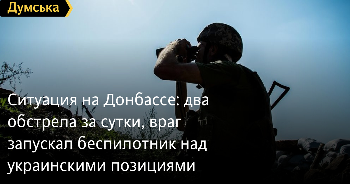Ситуация на Донбассе: два обстрела за сутки, враг запускал беспилотник над украинскими позициями30 августа боевики дважды обстреляли позиции украинских военных, несмотря на «всеобъемлющее перемирие», объявленное президентом Зеленским 27 июля. По информации штаба ООС, около Марьинки нашими воинами зафиксировано несколько выстрелов из стрелкового оружия со стороны вооруженных формирований Российской Федерации. Также на этом участке фронта с помощью ручного противотанкового гранатомета враг совершил дистанционное минирование местности одной противопехотной миной ПОМ-2. На Приазовье, вопреки договоренностям в рамках Трехсторонней контактной группы, зафиксирован пролет вражеского беспилотника над нашей территорией. Украинские подразделения оружие в ответ не применяли. Отмечается, что среди личного состава Объединенных сил боевых потерь и ранений нет. С начала текущих суток, 31 августа, на всех участках фронта пока тихо. СМЕРТЬ РОССИЙСКИМ ОККУПАНТАМ! Заметили ошибку? Выделяйте слова с ошибкой и нажимайте control-enter |