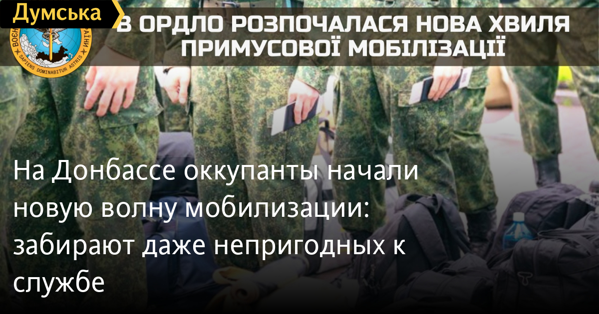 На Донбасі окупанти розпочали нову хвилю мобілізації: забирають навіть непридатних до службиРосійські нацисти та їхні посібники на тимчасово окупованих територіях Донецької та Луганської областей з 1 серпня проводять чергову хвилю примусової мобілізації місцевого населення. Як повідомили у Головному управлінні розвідки Міністерства оборони України, оскільки попередні «мобілізовані» жителі так званих «ЛДНР» зазнали у боях величезних втрат, тепер до «народної міліції» забирають навіть непридатних до служби та людей, які мали «відстрочку» від армії. За інформацією ГУР, для комплектації підрозділів «2 армійського корпусу» у Луганську на ринку зібрали два автобуси чоловіків, більшість із яких працювали вантажниками. В Алчевську та Хрустальному чоловіків просто хапають на вулицях та везуть у військкомати. Також продовжуються облави на підприємствах, на яких працюють чоловіки призовного віку. Через це багато місцевих жителів зараз намагаються ховатися. «Мобілізованим» продовжують видавати застарілу зброю та обмундирування ще часів Другої світової війни. СМЕРТЬ РОСІЙСЬКИМ ОКУПАНТАМ! Помітили помилку? Виділяйте слова з помилкою та натискайте control-enter |