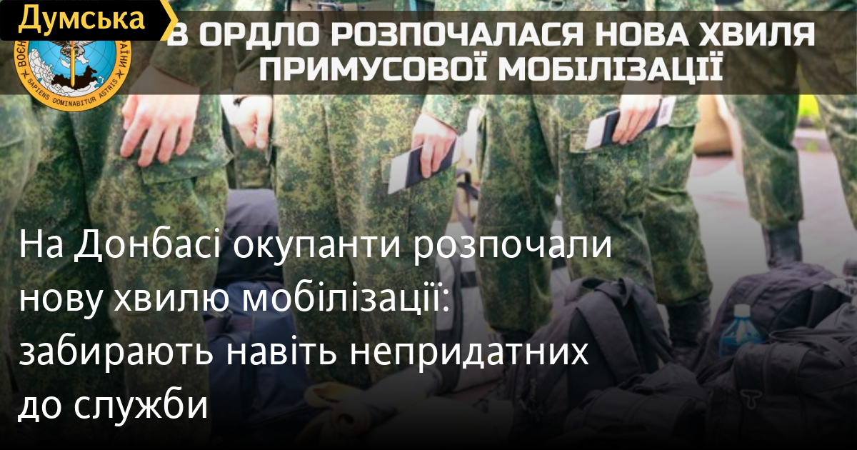 На Донбасі окупанти розпочали нову хвилю мобілізації: забирають навіть непридатних до службиРосійські нацисти та їхні посібники на тимчасово окупованих територіях Донецької та Луганської областей з 1 серпня проводять чергову хвилю примусової мобілізації місцевого населення. Як повідомили у Головному управлінні розвідки Міністерства оборони України, оскільки попередні «мобілізовані» жителі так званих «ЛДНР» зазнали у боях величезних втрат, тепер до «народної міліції» забирають навіть непридатних до служби та людей, які мали «відстрочку» від армії. За інформацією ГУР, для комплектації підрозділів «2 армійського корпусу» у Луганську на ринку зібрали два автобуси чоловіків, більшість із яких працювали вантажниками. В Алчевську та Хрустальному чоловіків просто хапають на вулицях та везуть у військкомати. Також продовжуються облави на підприємствах, на яких працюють чоловіки призовного віку. Через це багато місцевих жителів зараз намагаються ховатися. «Мобілізованим» продовжують видавати застарілу зброю та обмундирування ще часів Другої світової війни. СМЕРТЬ РОСІЙСЬКИМ ОКУПАНТАМ! Помітили помилку? Виділяйте слова з помилкою та натискайте control-enter |