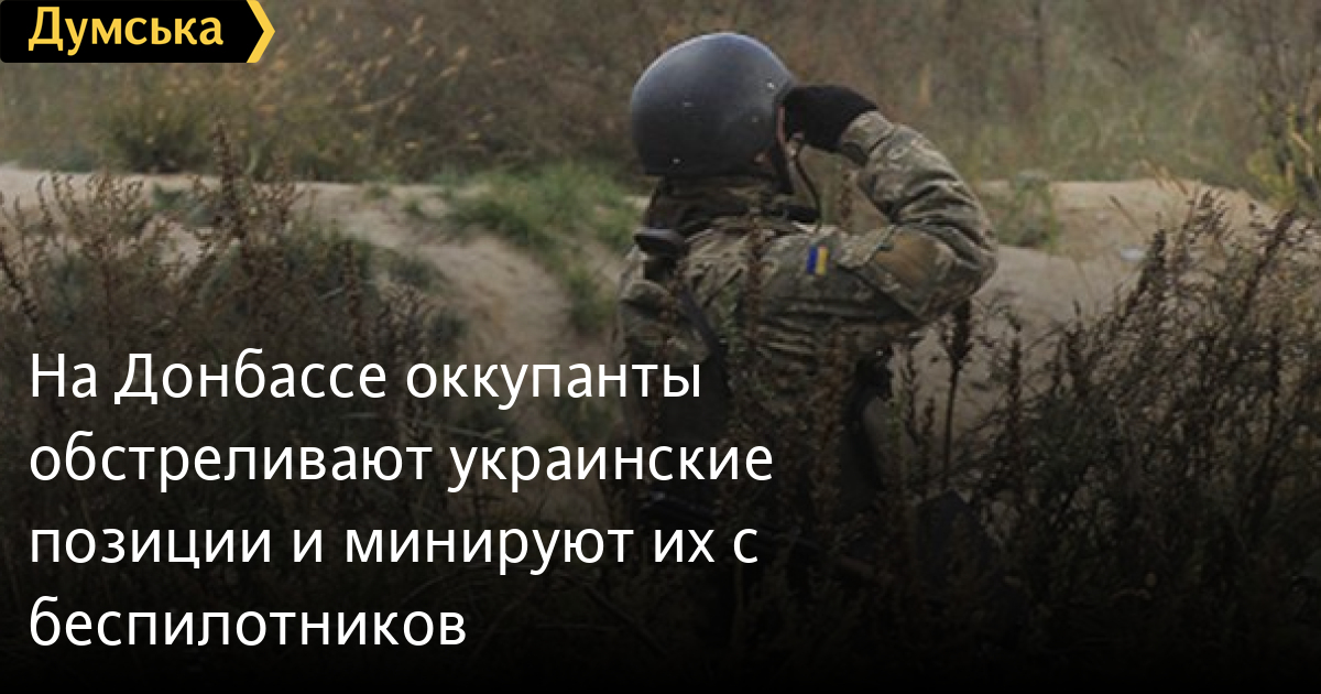 На Донбассе оккупанты обстреливают украинские позиции и минируют их с беспилотниковЗа минувшие сутки на Донбассе зафиксировали шесть нарушений режима прекращения огня со стороны вооруженных формирований России. Боевых потерь среди украинских военных нет. Об этом сообщили в штабе операции Объединенных сил. Там отметили, что неподалеку Авдеевки враг открывал огонь из минометов калибра 120 мм, а у поселка Пивденное — еще из противотанковых ракетных комплексов, зенитных установок, гранатометов различных систем и крупнокалиберных пулеметов. Возле Майорска российские оккупанты стреляли из минометов 82 калибра, крупнокалиберных пулеметов и стрелкового оружия. Кроме того, в пригороде Песков противник использовал крупнокалиберные пулеметы, подствольные и станковые противотанковые гранатометы. В районе поселка Зайцево враг совершил дистанционное минирование из ручных противотанковых гранатометов противопехотными осколочными минами ПОМ-2. СМЕРТЬ РОССИЙСКИМ ОККУПАНТАМ! Заметили ошибку? Выделяйте слова с ошибкой и нажимайте control-enter |