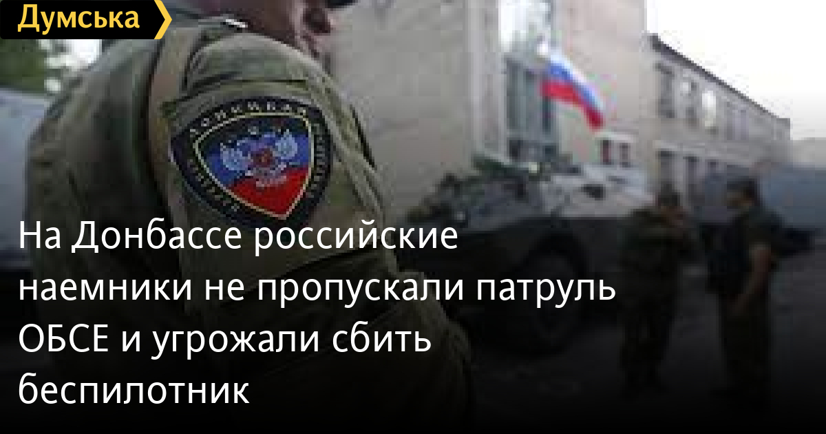 На Донбассе российские наемники не пропускали патруль ОБСЕ и угрожали сбить беспилотникРоссийские наемники на временно оккупированной территории Донецкой области в пятницу, 19 ноября, воспрепятствовали работе патруля Специальной мониторинговой миссии ОБСЕ в районе населенного пункта Старомихайловка. «Два явно вооруженных члена вооруженных формирований отказали патрулю СММ в доступе к населенному пункту, сославшись на необходимость получения разрешения от их командиров. Задачей патруля было уточнить сообщения о повреждении гражданских объектов в данном населенном пункте. В 10:25 наблюдателям сказали обратиться к старшим членам вооруженных формирований для содействия получению доступа в населенный пункт», — цитирует ежедневный отчет СММ ОБСЕ «Интерфакс-Украина». После примерно 50-минутного ожидания на блокпосте наблюдатели приняли решение запустить беспилотный летательный аппарат над населенным пунктом для уточнения сообщений о повреждениях, и уведомили об этом наемников. «После телефонного разговора с командирами члены вооруженных формирований угрожали сбить БПЛА СММ, если он будет запущен. Команда Миссии не стала запускать летательный аппарат и покинула этот район», — отмечается в отчете. Как сообщалось, глава СММ ОБСЕ в Украине намерен вынести вопросы препятствования деятельности СММ в отдельных районах Донецкой и Луганской областей на заседание постоянного совета ОБСЕ, которое назначено на 24 ноября в Вене. СМЕРТЬ РОССИЙСКИМ ОККУПАНТАМ! Заметили ошибку? Выделяйте слова с ошибкой и нажимайте control-enter |