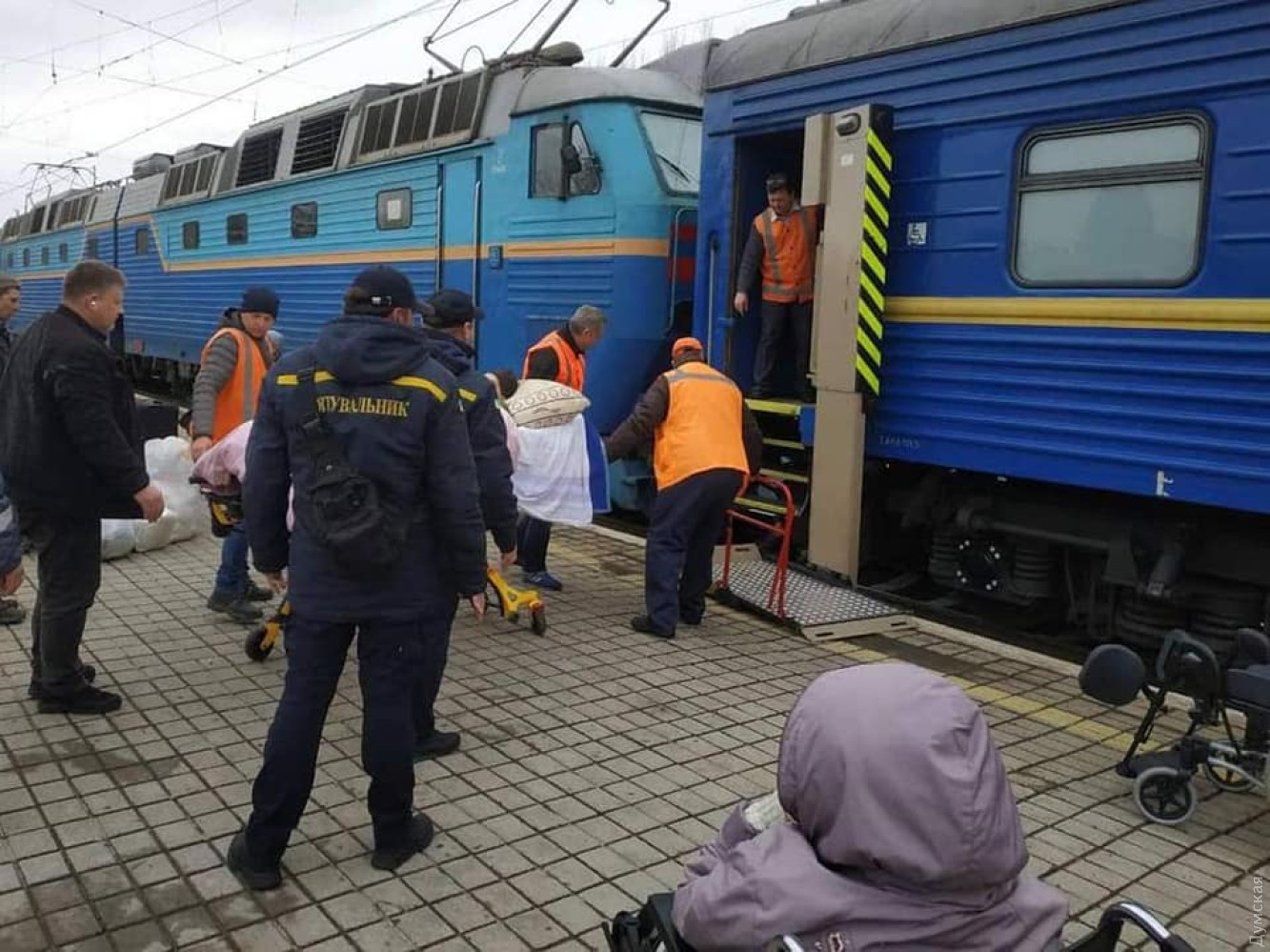 Сотрудники ГСЧС помогли погрузиться на эвакуационные поезда людям, проживающим в прифронтовых Покровском и Волновахском районах Донецкой области.