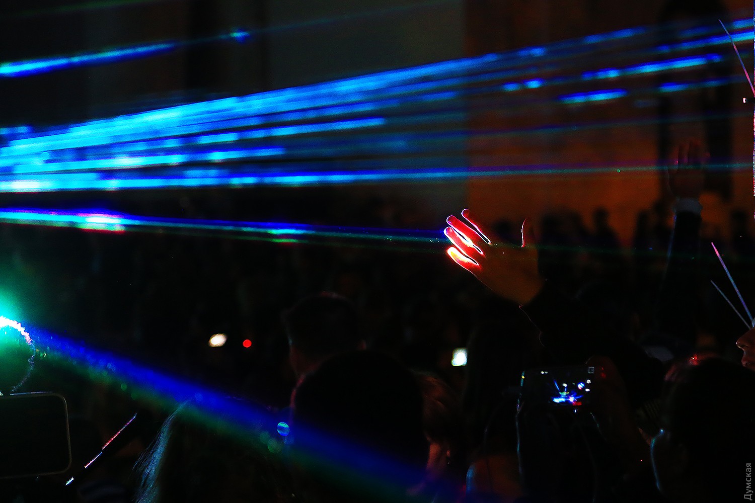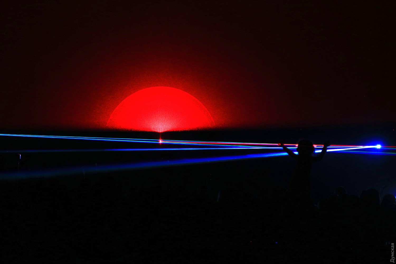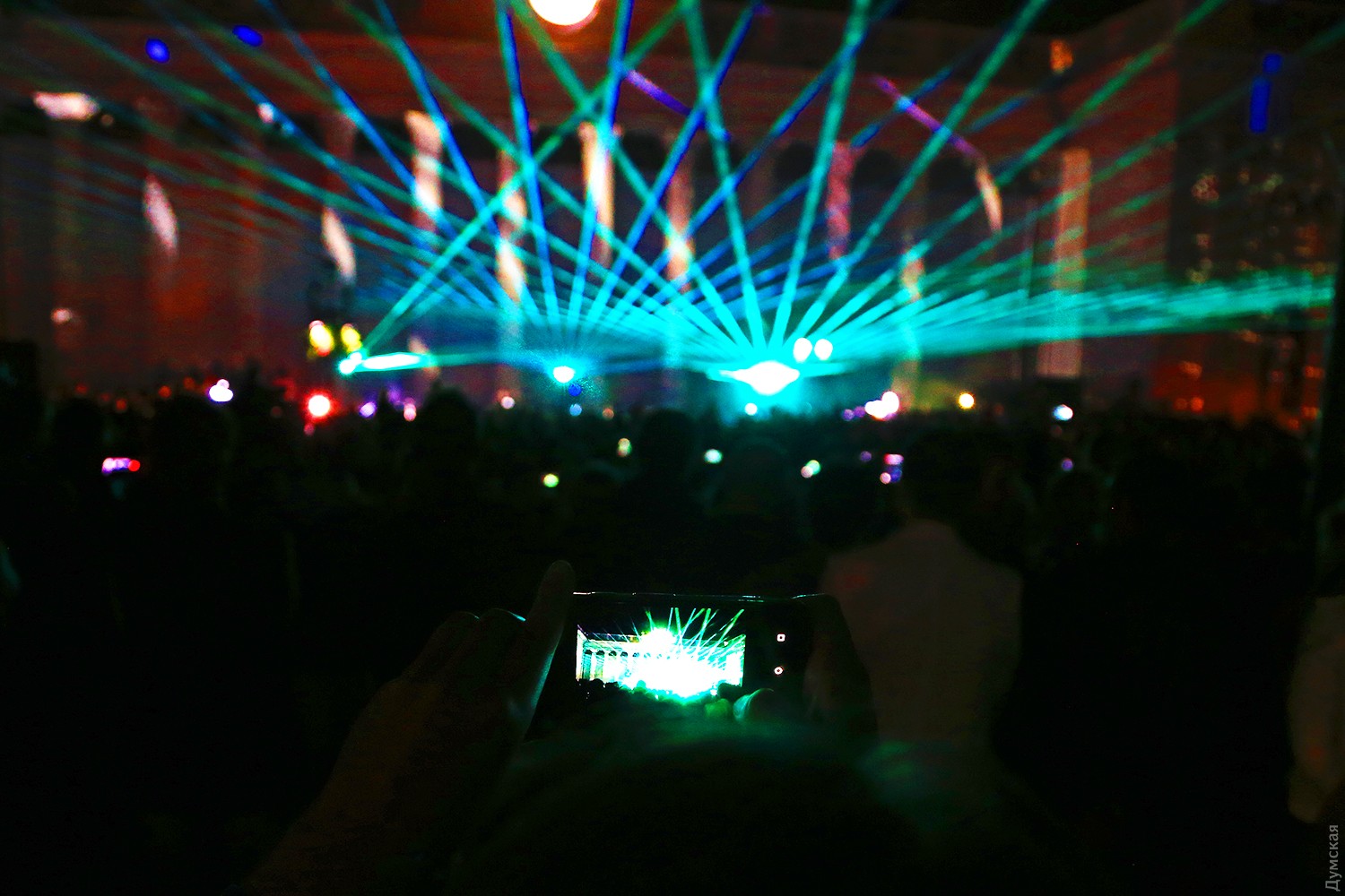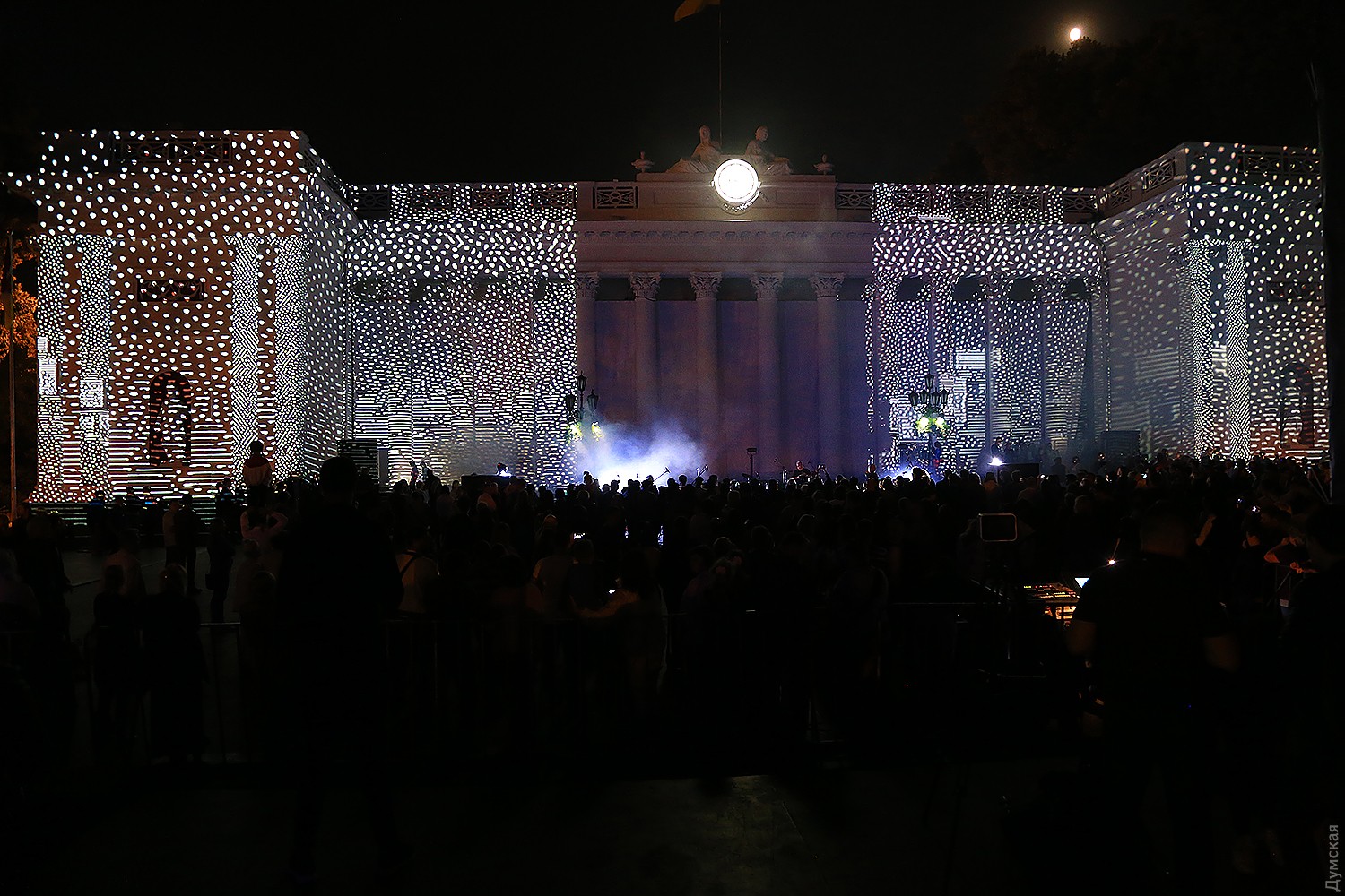 Сегодня вечером на Думской площади стартовал второй фестиваль света Odesa Light Fest. Представление должно было начаться в 21:00, но слегка задержалось, и первые световые и лазерные инсталляции зрители увидели только в 21:20.