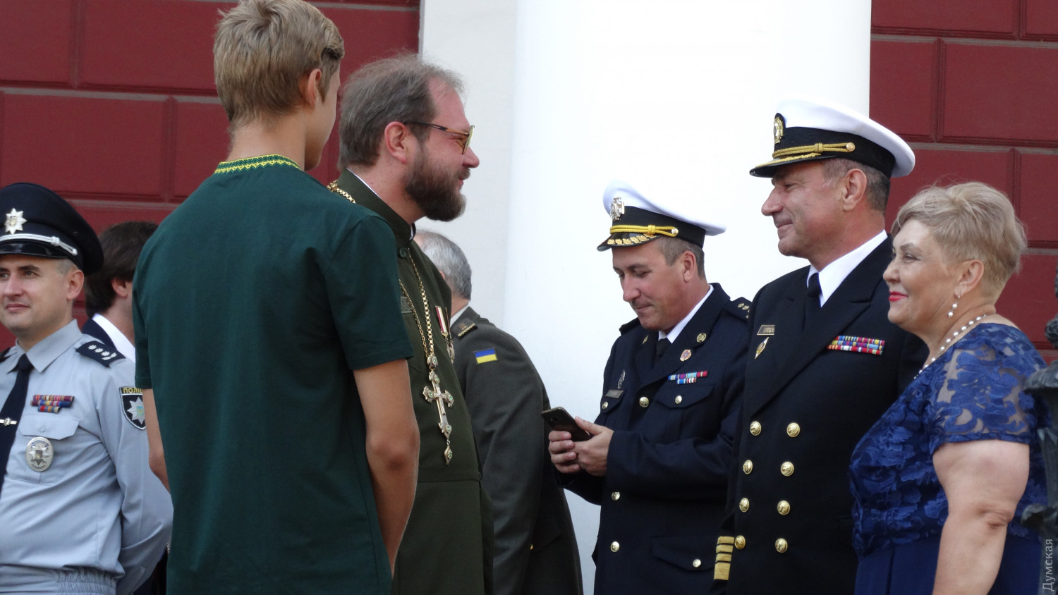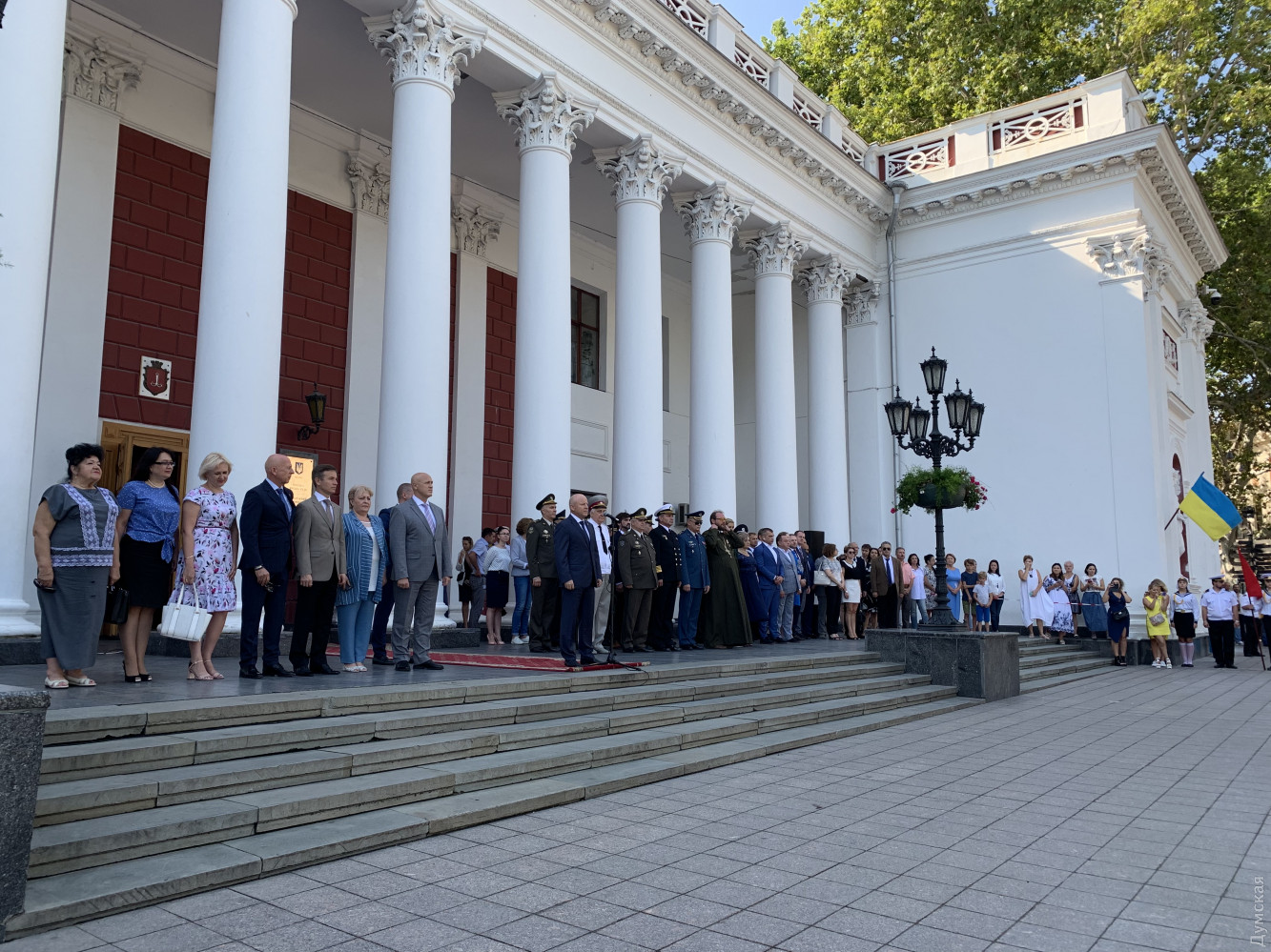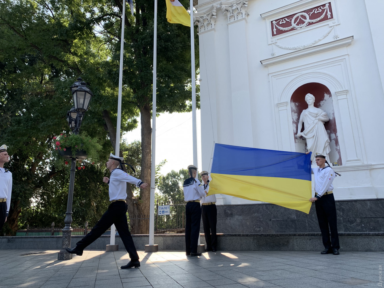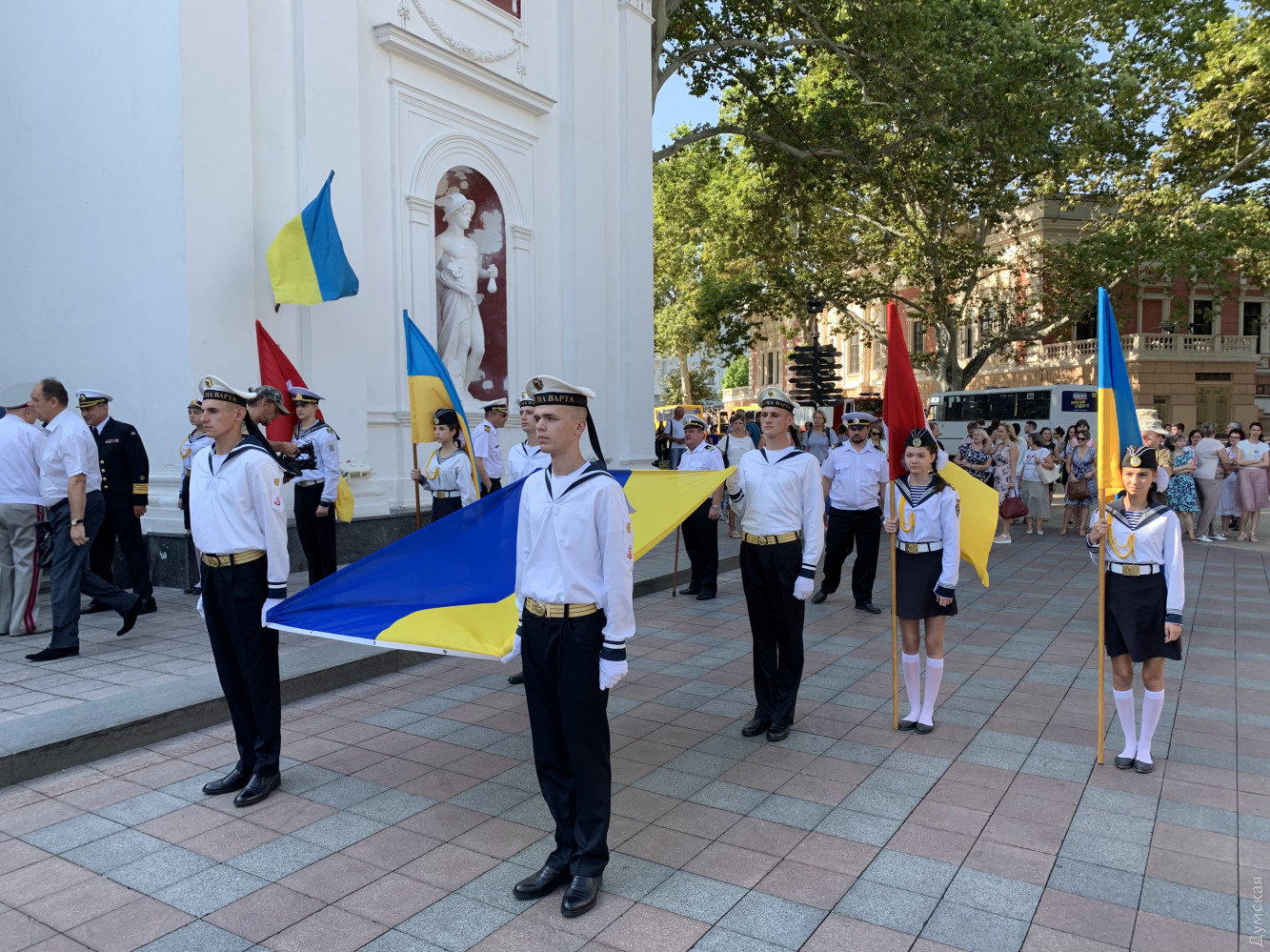 На церемонии поднятия флага присутствовал командующий Военно-морскими силами Украины адмирал Игорь Воронченко. В комментарии «Думской» военачальник поздравил всех украинцев с праздником и пожелал веры в победу: