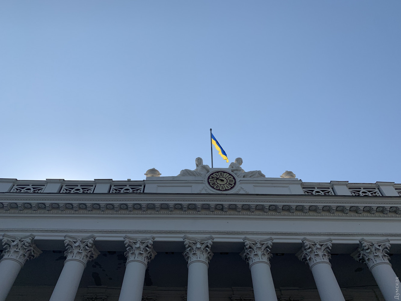 Государственный флаг Украины торжественно подняли сегодня утром на Думской площади Одессы в честь праздника, посвященного этому национальному символу.