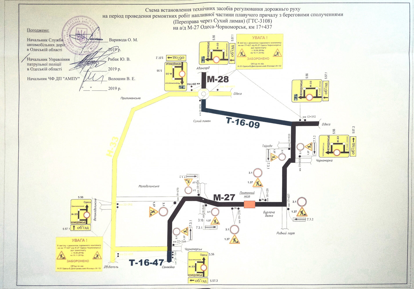 Черноморский филиал ГП «Администрация морских портов Украины» предупреждает о временном закрытии проезжей части понтонной переправы автомобильной дороги Одесса-Черноморск между селами Малодолинское и Бурлачья Балка.