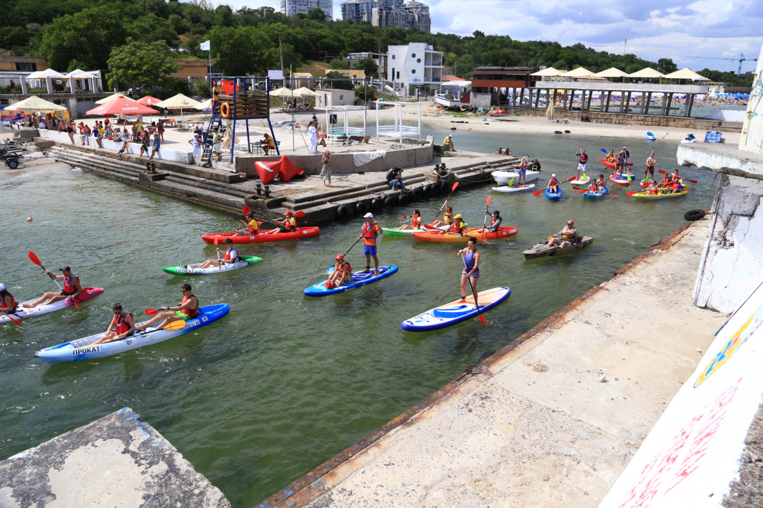 На одесском пляже состоялся самый масштабный в истории страны заплыв на каяках и досках для сапбордингаНациональный рекорд Украины установили сегодня на фестивале каякинга и сапбординга, который проходит на пляже Ланжерон. Как передает корреспондент «Думской», сразу 124 спортсмена одновременно вышли в море на своих досках и лодках, что стало самым масштабным заплывом на этих плавсредствах в истории страны. Рекорд зафиксировала представитель Национального реестра рекордов Украины Екатерина Чегаринская. Спортсмены стартовали примерно в 15:20. В море им мешал сильный порывистый ветер, причем сапбордистам пришлось хуже, чем каякерам, которые финишировали первыми. Участникам рекорда вручили диплом о рекорде и памятные деревянные медали. Фото — Сергей Смоленцев СМЕРТЬ РОСІЙСЬКИМ ОКУПАНТАМ! Помітили помилку? Виділяйте слова з помилкою та натискайте control-enter |