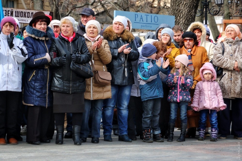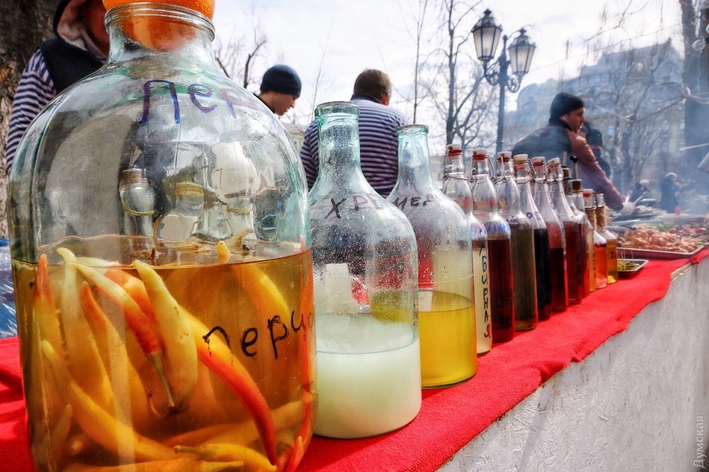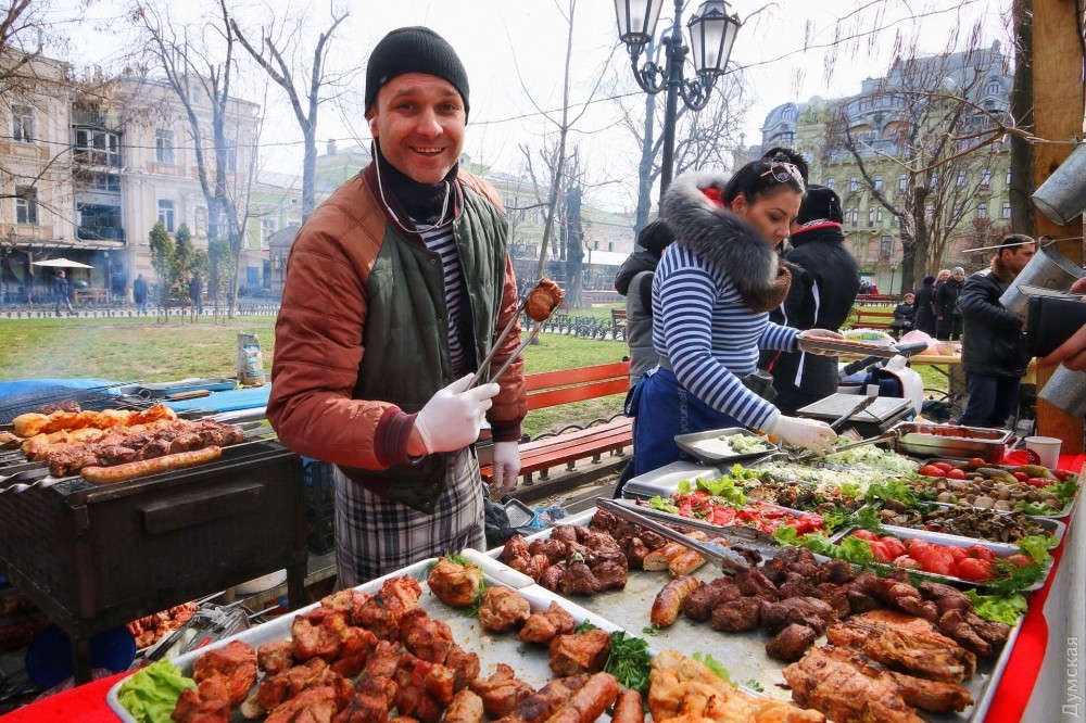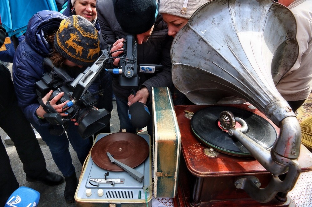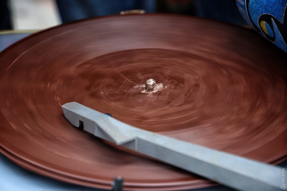 Сотрудники сладкого музея рассказали нам, что всего было сделано три пластинки, одну из которых тут же проиграли на стареньком проигрывателе перед собравшимися одесситами, а потом дружно съели. К сожалению, шоколадный звуконоситель — одноразовый, но при правильном подходе может храниться несколько лет. На фестивале также можно было угоститься разнообразной одесской едой и сфотографироваться в настоящем интерьере квартиры Утесова. Фото — Александр Гиманов