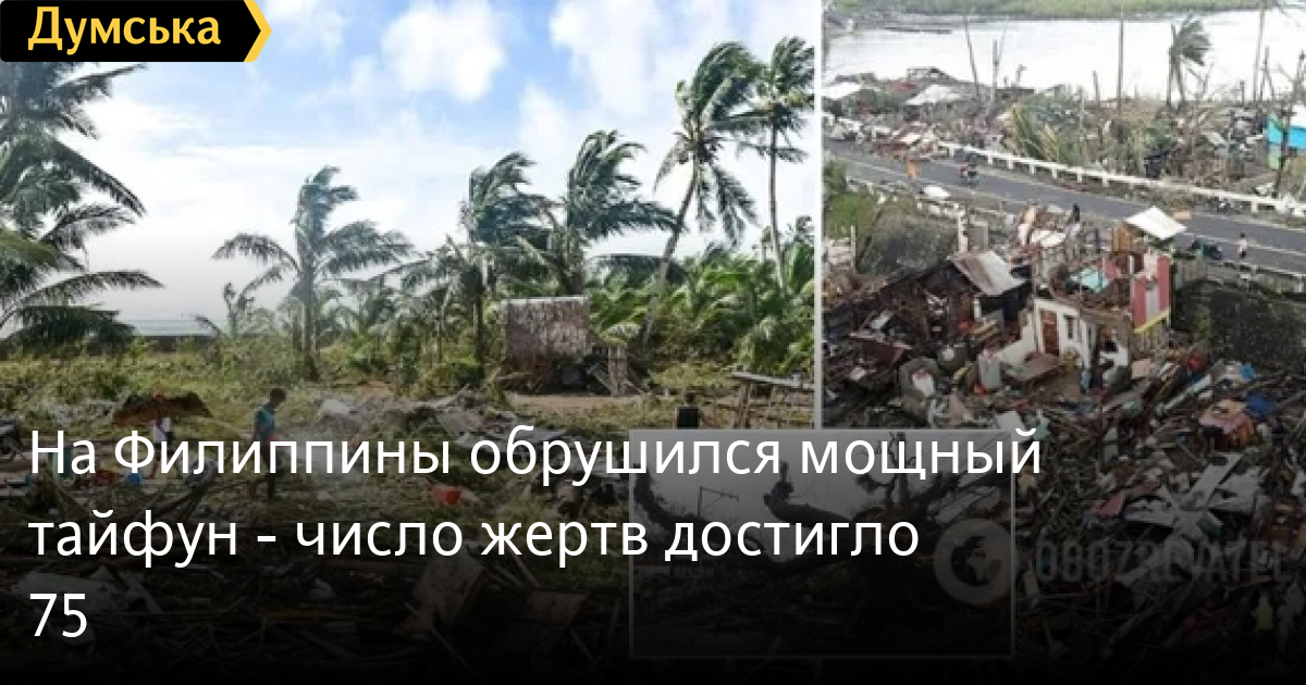 На Филиппины обрушился самый сильный тайфун в этом году. Он получил название «Рэй». Местные власти сообщают о 75 погибших, еще по меньшей мере 13 человек ранены и 10 считаются пропавшими без вести. Число погибших и пострадавших может увеличиться, поскольку к некоторым из пострадавших районов нет доступа, также местами отсутствует связь, сообщает «Обозреватель». В поисково-спасательных операциях участвуют военные, полиция, спасатели и береговая охрана. СМЕРТЬ РОССИЙСКИМ ОККУПАНТАМ! Заметили ошибку? Выделяйте слова с ошибкой и нажимайте control-enter |