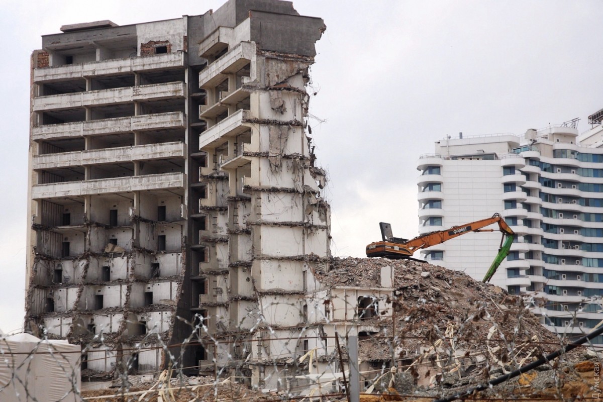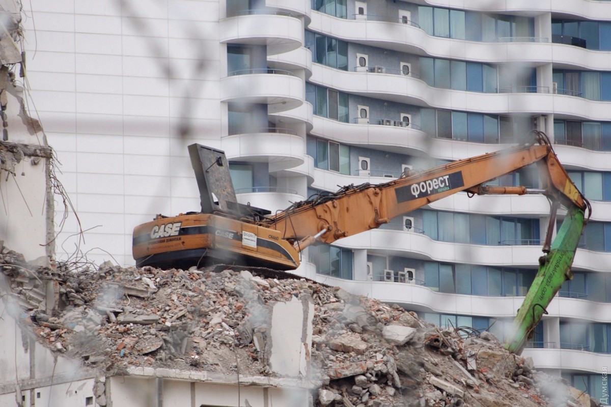 Я не понимаю их технологии сноса. Во всём мире существуют направленные взрывы, а здесь, судя по фотографии, — экскаватором. Ещё бы кувалдой попробовали.