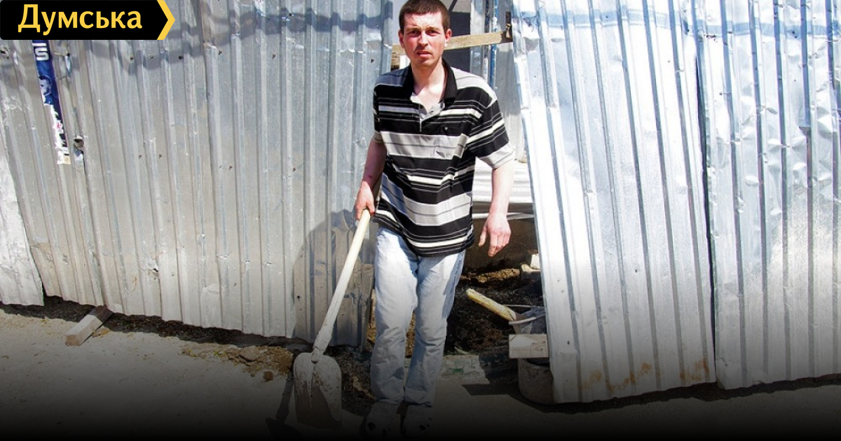 Рабочий угрожает вашему корреспонденту лопатой