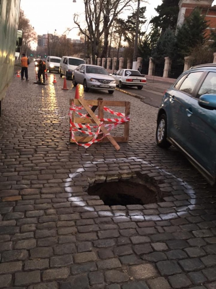 На проезжей части Французского бульвара Одессы образовался провал.