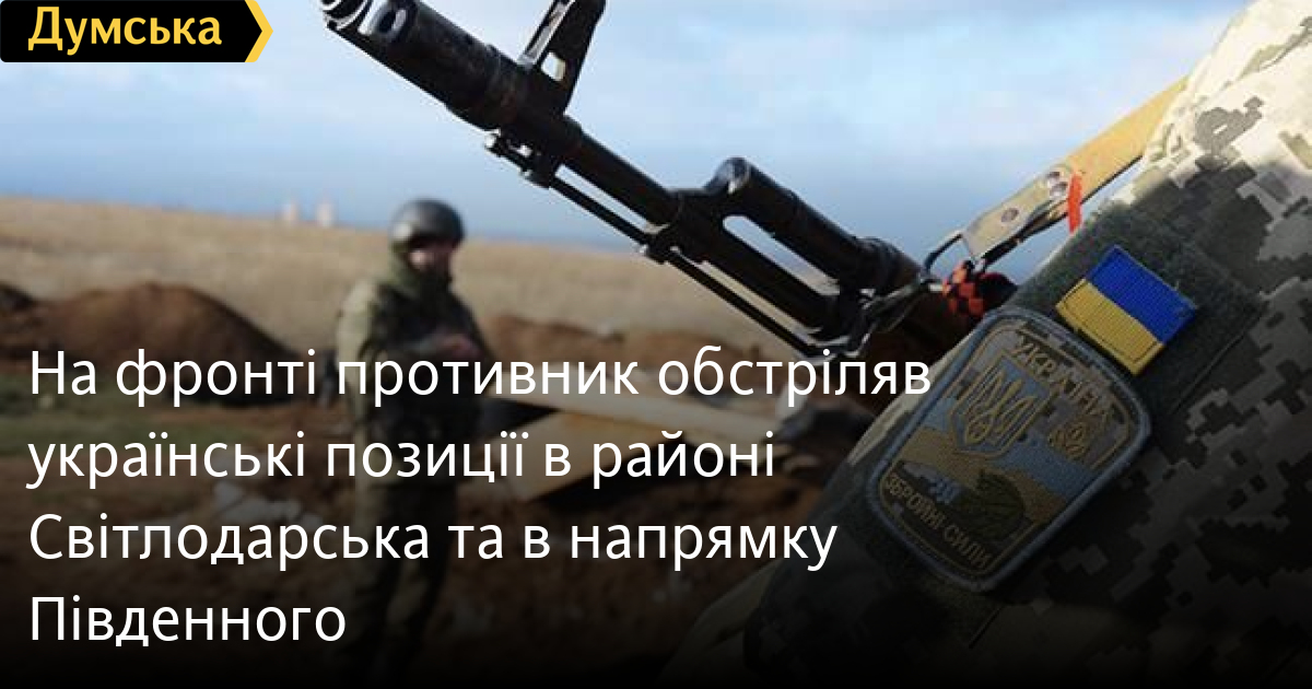 На фронті противник обстріляв українські позиції в районі Світлодарська та в напрямку ПівденногоОдне порушення режиму припинення вогню із застосуванням забороненого Мінськими домовленостями озброєння зафіксовано з боку російсько-окупаційних військ 28 листопада. Як повідомляють в штабі ООС, втрат серед військовослужбовців Об’єднаних сил внаслідок дій ворога немає. В напрямку Південного ворог здійснив обстріл, застосовуючи міномети калібру 82 мм та станкові протитанкові гранатомети. Станом на 7:00 29 листопада з боку російсько-окупаційних військ зафіксовано одне порушення режиму припинення вогню. В районі Світлодарська противник відкривав вогонь з автоматичних станкових гранатометів. «Українські захисники відкривали вогонь у відповідь, не застосовуючи заборонене Мінськими домовленостями озброєння, та змусили противника припинити обстріли», — повідомили у штабі. СМЕРТЬ РОСІЙСЬКИМ ОКУПАНТАМ! Помітили помилку? Виділяйте слова з помилкою та натискайте control-enter |