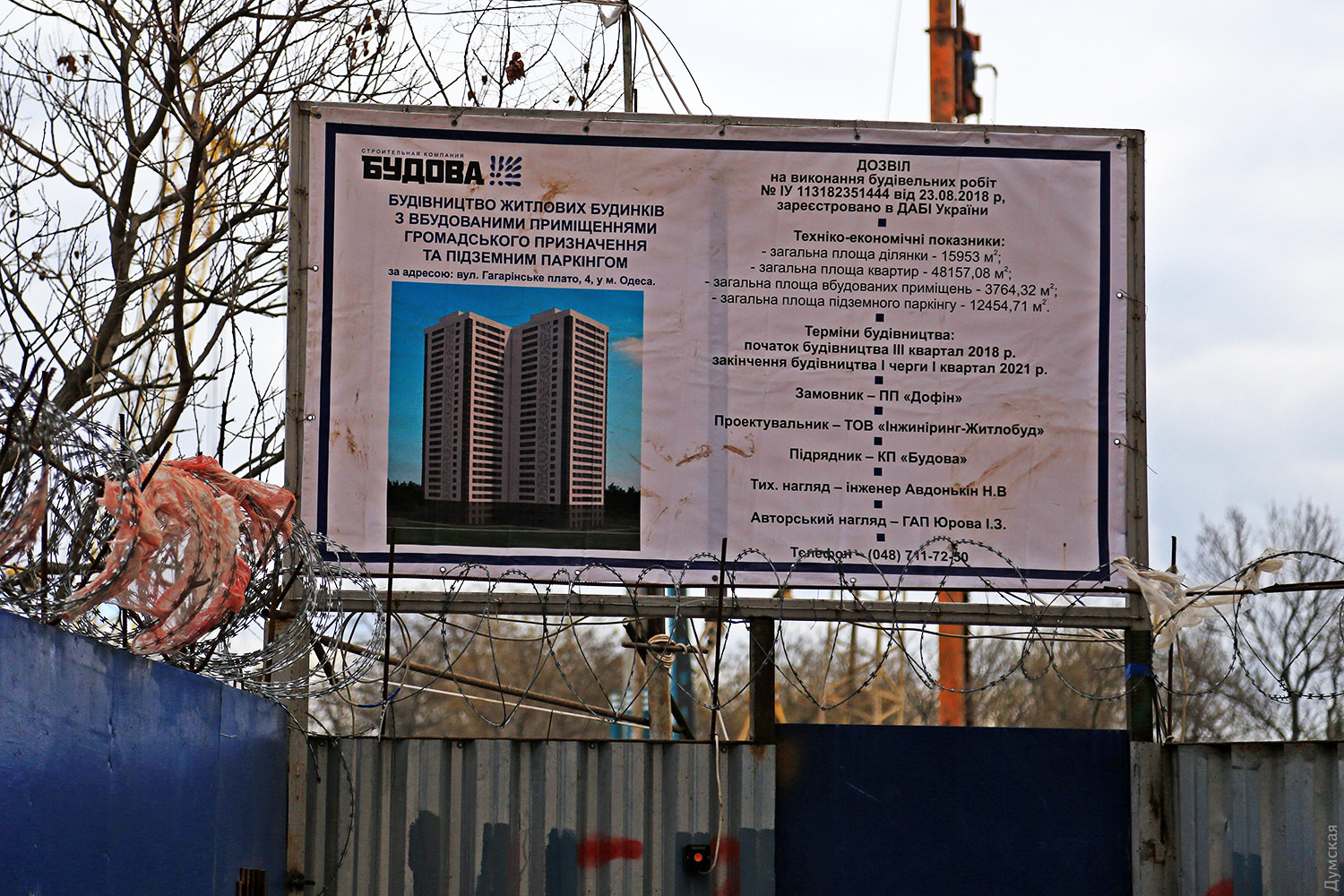 Сейчас уже понятно, что на всем плато не останется ни одного дерева», — говорит местная жительница Ирина. Соседи стройки вызвали полицию, которая, приехав, составила протокол, но ничего больше предпринять не смогла или не захотела. Через два часа вырубка продолжилась. В результате Гагаринское окончательно облысело. Напомним, 4 августа 2018 года рабочие «Будовы», вооруженные бензопилами, в течение получаса уничтожили более 200 деревьев, расположенных в парковой зоне, где ранее был дом приемов Одесского горсовета. «Будова» на этом объекте выступает в роли генподрядчика. У города дом приемов выкупила компания «Дофин», она и является формальным заказчиком строительства. Местные жители выступают против уничтожения парка. 28 ноября полиция, воспользовавшись военным положением (и до вступления в силу соответствующего указа президента), разогнала людей, которые несколько недель блокировали проезд для строительной техники. На следующий день ситуация обострилась. К протестующим присоединились активисты «Национального корпуса», и все вместе они осадили стройку «Будовы». В обед со стройплощадки неожиданно выскочили титушки и напали на протестующих. Они использовали палки и газовые баллончики. Активисты дали отпор, и нападавшие скрылись на территории стройки. Там их и задержала полиция. Впоследствии боевиков отпустили.