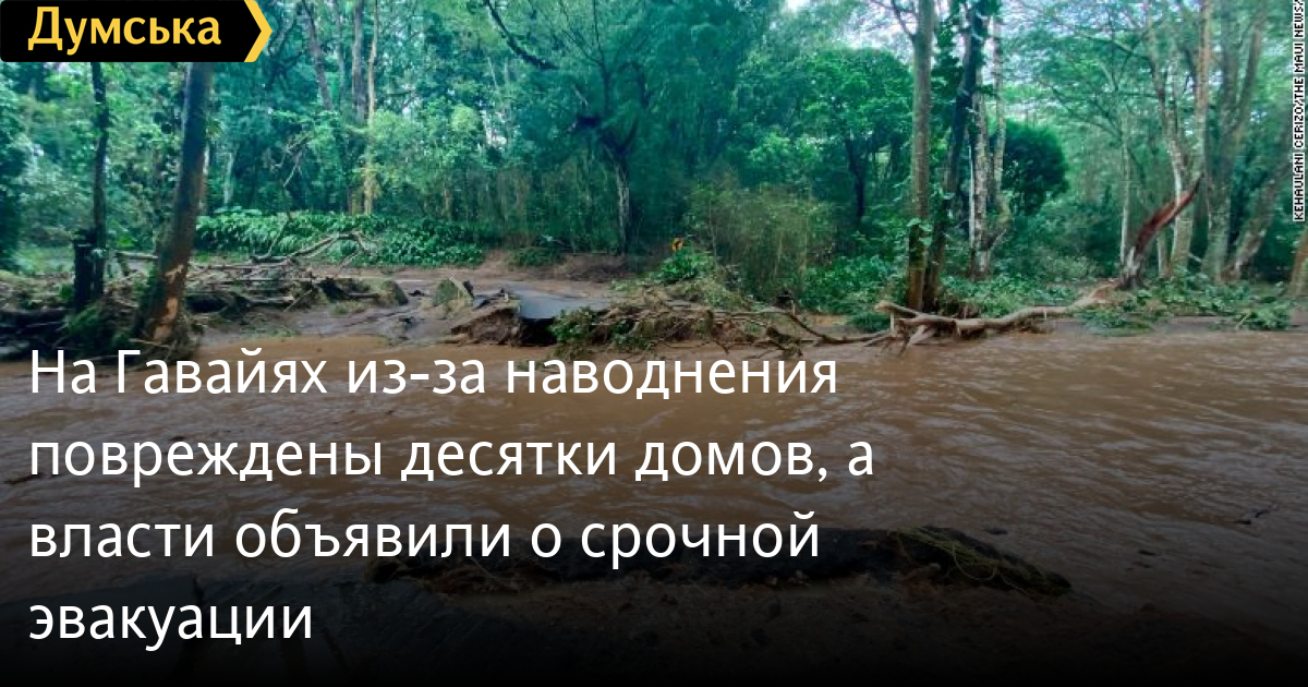 На Гавайях из-за наводнения повреждены десятки домов, а власти объявили о срочной эвакуацииНа Гавайях на острове Мауи из-за сильных ливней, которые идут уже несколько дней подряд, прорвало плотину, что привело к сильному наводнению и подтоплению домов. Об этом сообщает CNN. Прорвало плотину Каупакалуа в Хайку из-за чего уровень воды достиг критической отметки, и власти объявили о срочной эвакуации людей, живущих ниже по течению реки. Для этих целей на острове открыли три убежища. Служба спасения Мауи сообщила, что получила более дюжины звонков с призывами о помощи от местных жителей, которые оказались в ловушке в своих домах из-за стихии. Дома и мосты серьезно пострадали в результате наводнения. Кроме того, непогода оставила порядка 1300 домов без электричества. Местные жители говорят, что такого сильного наводнения в этом районе не было около 40 лет. СМЕРТЬ РОССИЙСКИМ ОККУПАНТАМ! Заметили ошибку? Выделяйте слова с ошибкой и нажимайте control-enter |