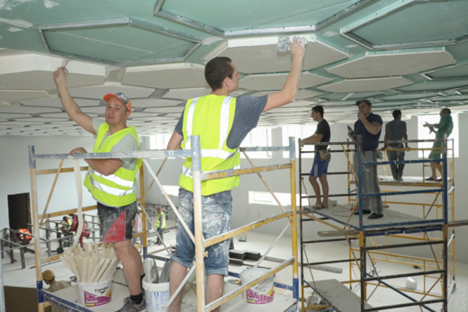 Строительные и отделочные работы практически завершены, строители благоустраивают территорию, обустраивают спортзалы (их в школе два) и спортплощадки. Департамент образования и науки проводит тендеры по закупке различного оборудования и мебели для обеспечения учебного процесса.