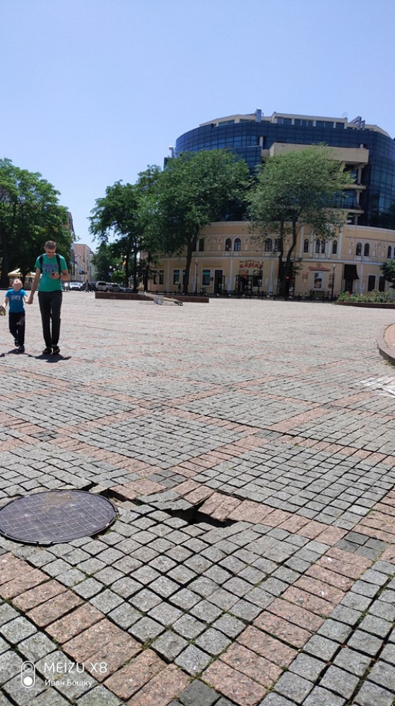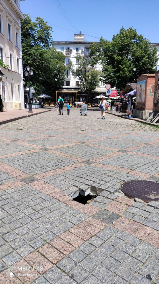 Небезопасным для пешеходов стал участок Греческой площади со стороны Дерибасовской. Как сообщают очевидцы, на пути к главной улице Одессы образовался провал глубиной примерно полметра.