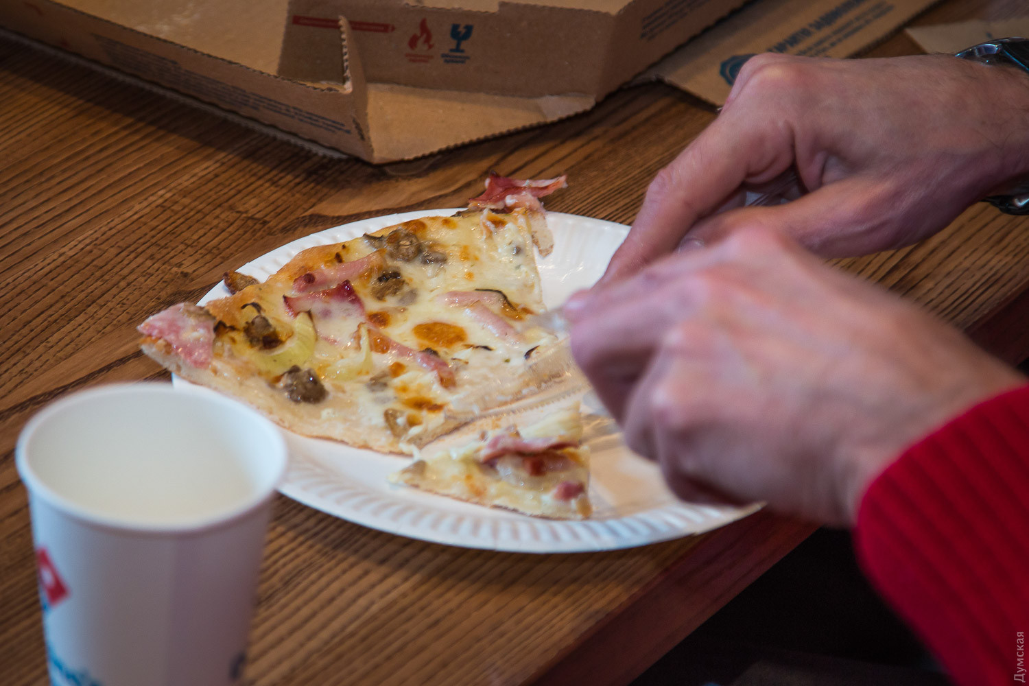вот уже и первые отзывы в пабликах пошли: "Не рекомендую одесситы! Хотел бы оставить отзыв об новой открытой пиццерии Domino's Pizza. Это ужас. Заказал по акции 2 пиццы — барбекью и карбонару. Во-первых — дозванивался с минут 5, потом меня переключали на другого оператора. Во-вторых — корж тонкий настолько, что, как говорил Жванецкий, через него можно читать. В-третьих — начинки почти нет. Как будто кисточкой помазали. Этакий лаваш с токой слойкой чего-то. В-четверых — вкус. Как будто жуешь хлеб, лежавший рядом с колбасой. Администрации чудного заведения: Акция — не значит меньше или хуже. И нечего писать про американские традиции на коробке. Не анонимно. Репост. Дмитрий Ерофеев"