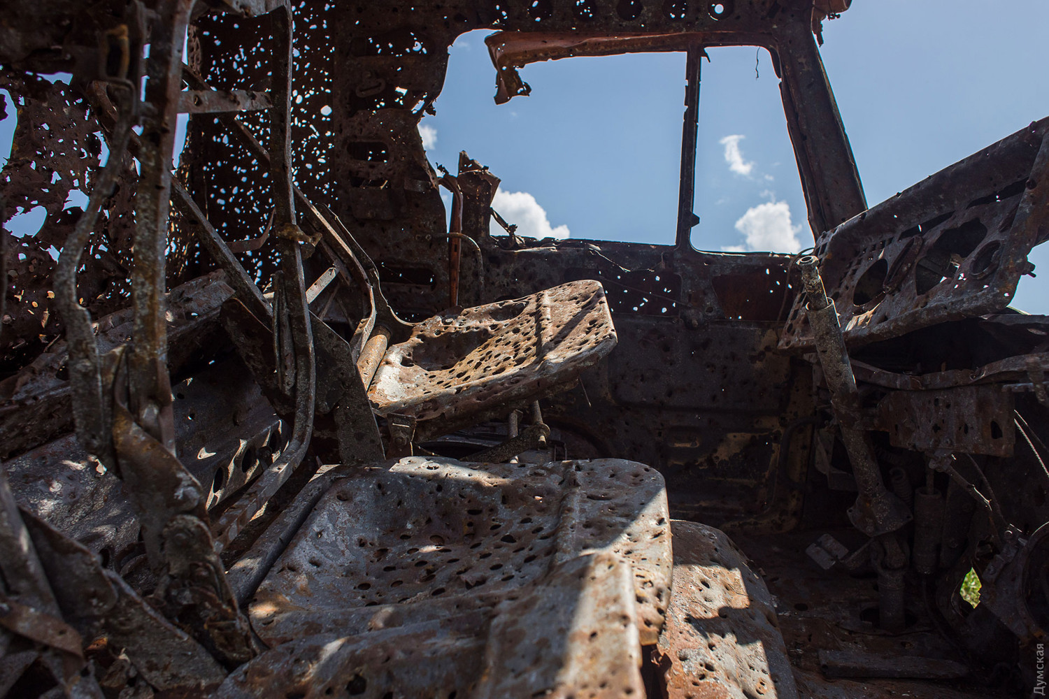 Ситуация на южном фронте в Николаевской и Херсонской областях, по понятным причинам, вызывает особый интерес у одесситов. Военный корреспондент «Думской» в очередной раз побывал в прифронтовой зоне и пообщался с теми, кто «работает по неприятелю», приближая победу Украины. Южное направление – бескрайние поля, бесконечное небо, а между ними — частокол тополей и уходящая за горизонт дорога. Степь. Наша. Мы находимся где-то в районе Баштанки. Солнце жарит по-летнему, горячий воздух колышется над землей, и эта дымка размывает пасторальный пейзаж. Вдалеке, поднимая пыль, едет трактор. Фермеры, несмотря на близость к фронту, продолжают делать свою важную работу — возделывать поля. Вот густые, словно волосы девушки – так и хочется запустить в них руку – поля с взошедшим ячменем, а рядом участок с едва проклюнувшимися ростками подсолнечника. Другой участок ждет своей очереди – по еще не перепаханной территории как ни в чем не бывало скачет друг за другом парочка зайцев. Природа очистилась На обочине проселочной дороги чужеродной грязной тушей догнивает уничтоженный украинскими защитниками российский КамАЗ. Металлический остов военной машины и его кабина больше похожи на огромное ржавое решето. В начале марта грузовик подбили из РПГ. Боекомплект, который перевозили в кузове, салютовал нашим бойцам еще несколько часов. Украинская земля до сих пор усеяна остатками патронов, а неподалеку — могила, в которой военнослужащие Сил обороны похоронили останки непрошеных гостей. Сейчас на границе Николаевской и Херсонской областей складывается ситуация, которую, с осторожным оптимизмом, можно назвать позитивной. Украинские воины отодвигают линию фронта к Херсону и уже в нескольких местах перешли Ингулец, образовав плацдарм на восточном берегу реки. О том, какие именно населенные пункты находятся под нашим полным контролем, говорить пока рано. Расстояния, на которые работает как украинская, так и неприятельская артиллерия, не позволяют считать эти районы полностью безопасными. Враг умудряется стрелять даже по Николаеву. По словам офицера N-cкой бригады Сухопутных войск, действующей на этом направлении, сейчас главную роль здесь играет именно «арта»: «Контрбатарейные дуэли у нас обычная вещь, и мы показываем лучшие результаты, чем противник, — с удовлетворением рассказывает военный «Думской». – На днях наши артиллеристы гоняли по полям три российские батареи и так и не дали им разложиться». Неплохо показывают себя британские гаубицы М777. Однако, добавляет наш собеседник, это оружие довольно капризное. Идеально работают «вампиры» (чешские РСЗО RM-70 Vampire — те же «грады», но на базе «Татры», — Ред.) – удлиненная модификация позволяет очень оперативно перезаряжать боекомплект. Плюс этих машинок еще и в том, что они просты в обслуживании и ремонте. «Вампиры» сжигают врага на всем участке южного фронта от Кривого Рога до Александровки. Но есть и сложности. С недавних пор неприятель разжился несколькими «Торнадо-С», способными бить на 120 км. Как всегда, на высоте украинские ССО. Позавчера со «Стингера» над Ингульцом был сбит очередной вертолет К-52, известный как «Аллигатор». А 27 мая, благодаря работе дрона, удалось обнаружить и уничтожить артиллерией еще три вертушки: два К-52 и один Ми-8, севших на дозаправку. К слову, дрон, средства на приобретен