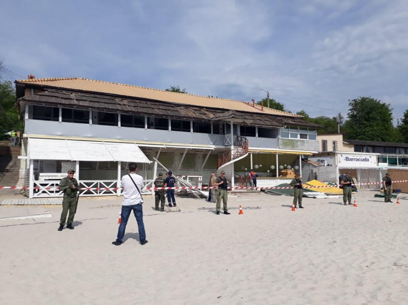 Сегодня на одесском пляже Ланжерон сотрудники департамента муниципальной безопасности горсовета снесли часть кафе «Авокадо». Об этом сообщил вице-мэр Андрей Котляр. По его словам, летняя площадка заведения была построена незаконно, в связи с чем исполком принял решение о демонтаже. По данным мэрии, это кафе принадлежит частному предприятию «Кинг». СМЕРТЬ РОСІЙСЬКИМ ОКУПАНТАМ! Помітили помилку? Виділяйте слова з помилкою та натискайте control-enter |