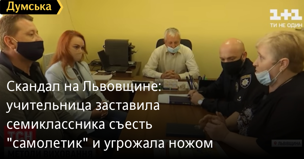 Скандал на Львовщине: учительница заставила семиклассника съесть «самолетик» и угрожала ножомВо Львовской области учительница информатики попала в скандал после того, как размахивала ножом перед учеником седьмого класса и заставила его съесть бумажный «самолетик». По данным ТСН, объектом издевательств стал 12-летний Владислав. Мальчик рассказал, что кто-то в классе бросил самолетик, он его поднял и положил на парту. Педагог, подумав, что самолетик запустил Владислав, заставила подростка съесть его. На этом учительница не остановилась. Она увидела, что у Владислава нет ручки, и заявила, что, мол, ничего — он у нее сейчас кровью писать будет. После этого женщина достала из сумки нож и начала размахивать им перед мальчиком, угрожая порезать ему пальцы, так как он себя плохо ведет. Весь класс притих, дети были напуганы. Родители Владислава сразу решили написать заявление в полицию, хотя учительница уверяла, что это была просто шутка такая, а дети ее не поняли. Из-за неудачной шутки педагога вызвало на ковер руководство школы, проводится служебная проверка, подключился в том числе горсовет. Также, по данным УНН, происшествием уже заинтересовалась полиция, но пока админпротоколы по факту составлены не были, также не было возбуждено уголовное дело. Расследование продолжается. СМЕРТЬ РОССИЙСКИМ ОККУПАНТАМ! Заметили ошибку? Выделяйте слова с ошибкой и нажимайте control-enter Новости по этой теме: 12 января 2022: Харьковские станции метро ожидает масштабная проверка: в вестибюле подземки на площади Конституции рухнул потолок (фото) 8 января 2022: В Одессе из офиса фирмы выкрали сейф с внушительной суммой денег, золотом и пистолетом 27 декабря 2021: В лесополосе под Киевом нашли тело главврача из Ровенской области: по подозрению в убийстве задержаны таксист с приятелем |