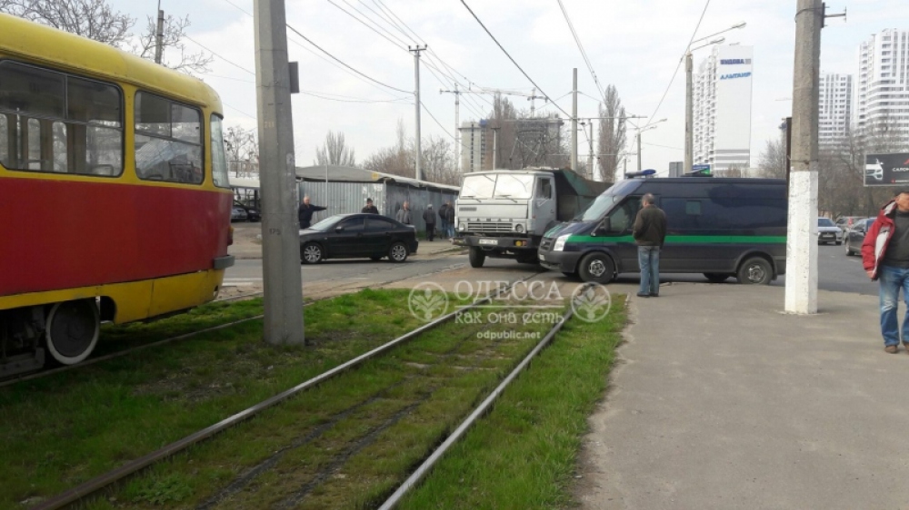 Сегодня в районе четвертой станции Люстдорфской дороги произошло ДТП с участием трамвая. Об этом сообщает пресс-служба КП «Одесгорэлектротранс». «Водитель автомобиля КамАЗ в нарушение ПДД не предоставил преимущественного права проезда и допустил столкновение с трамваем, следовавшим по маршруту №13», — говорится в сообщении. Пострадавших в результате аварии нет. Движение электротранспорта было заблокировано в течение 40 минут. Фото — «Одесский паблик»