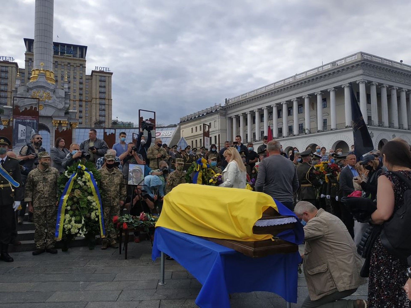 В Киеве на Майдане Независимости простились с погибшим в зоне проведения Операции объединенных сил младшим лейтенантом 24-й отдельной механизированной бригады имени Короля Даниила Тарасом Матвеевым. Видео и фото с церемонии прощания выложили в Фейсбуке друзья офицера. В церемонии прощания приняли участие министр обороны Андрей Таран и главнокомандующий ВСУ Руслан Хомчак. Министр обороны вручил отцу погибшего украинского военного звезду Героя Украины. Тарас Матвеев погиб вечером 10 июля на украинских позициях возле села Троицкое Попаснянского района. Мина противника попала в блиндаж, где было еще двое солдат. Матвеев вытащил двух своих бойцов наружу и переместил в безопасное место. В это время еще одна мина упала на позицию и своими осколками смертельно ранила Тараса. Командование части 24-й отдельной механизированной бригады имени Короля Даниила Галицкого и побратимы подали документы о присвоении младшему лейтенанту Тарасу Матвееву звания Героя Украины, соответствующий приказ президент Зеленский подписал вчера, 13 июля. Сам он на прощание с погибшим офицером не приехал. Сегодня в 17:00 жители Львова смогут почтить память Героя Украины в гарнизонном храме Петра и Павла, а завтра в полдень с Тарасом простятся на родине в Жидачеве. Фото и видео Алины Боднар СМЕРТЬ РОСІЙСЬКИМ ОКУПАНТАМ! Помітили помилку? Виділяйте слова з помилкою та натискайте control-enter |