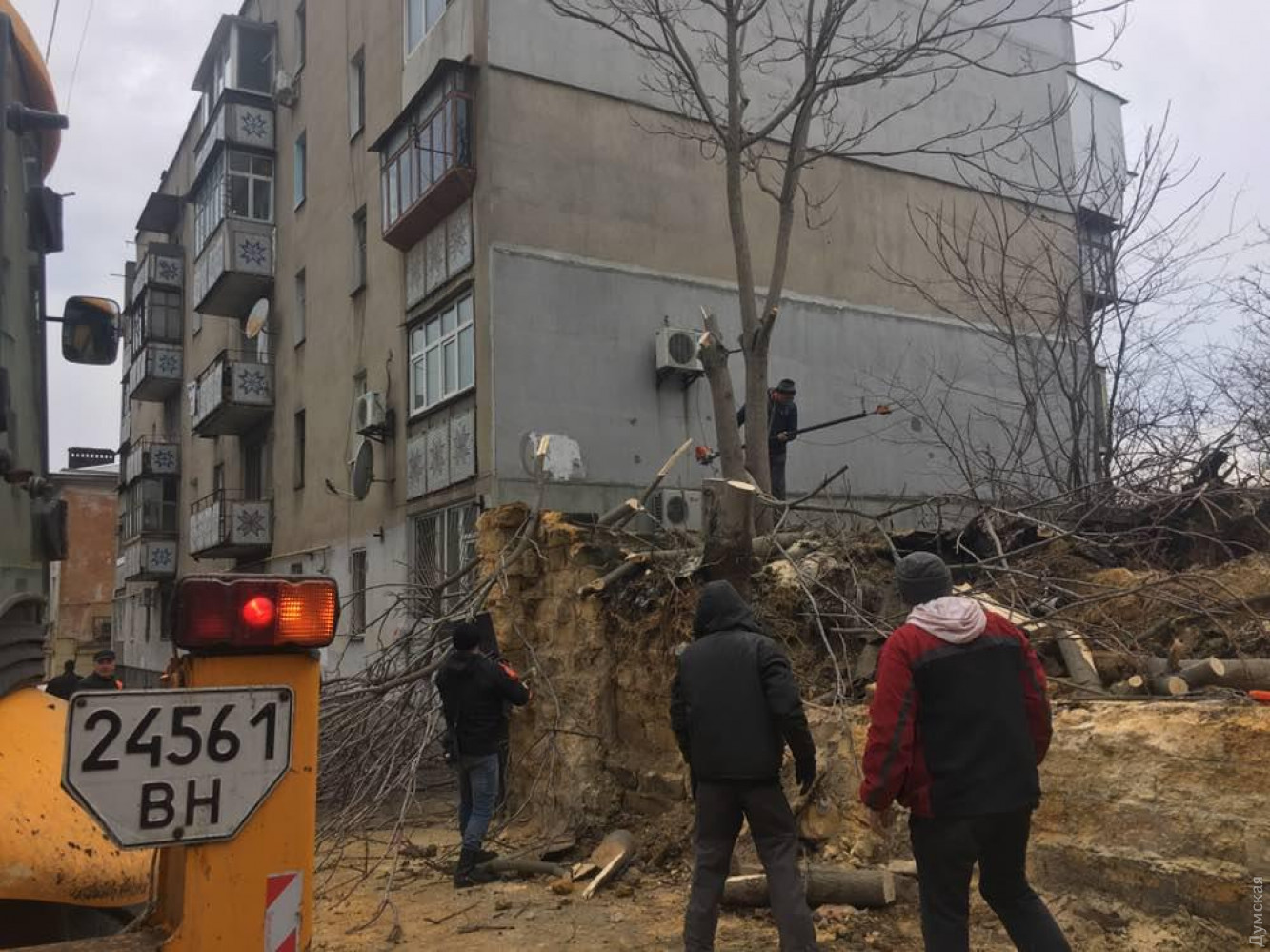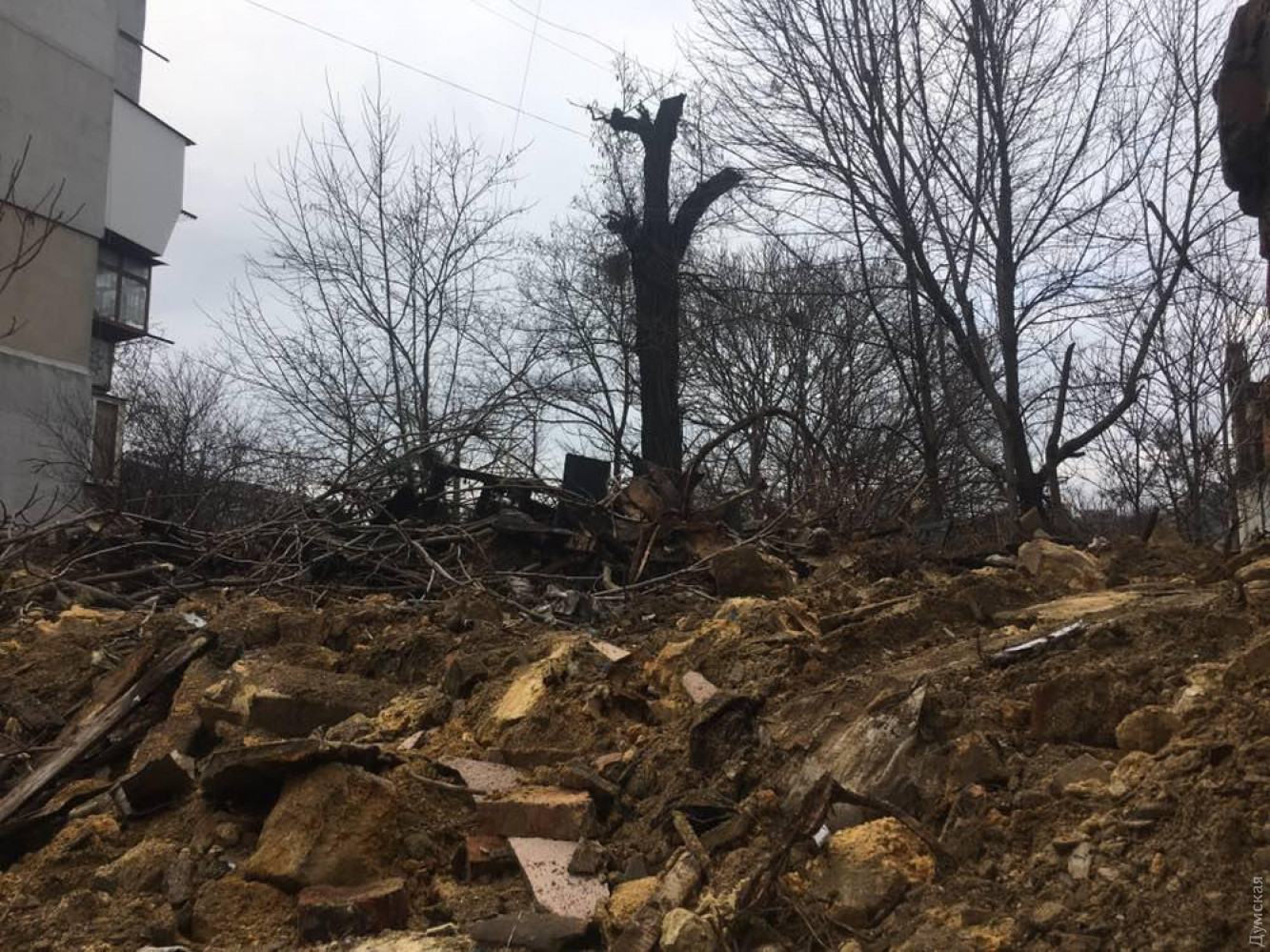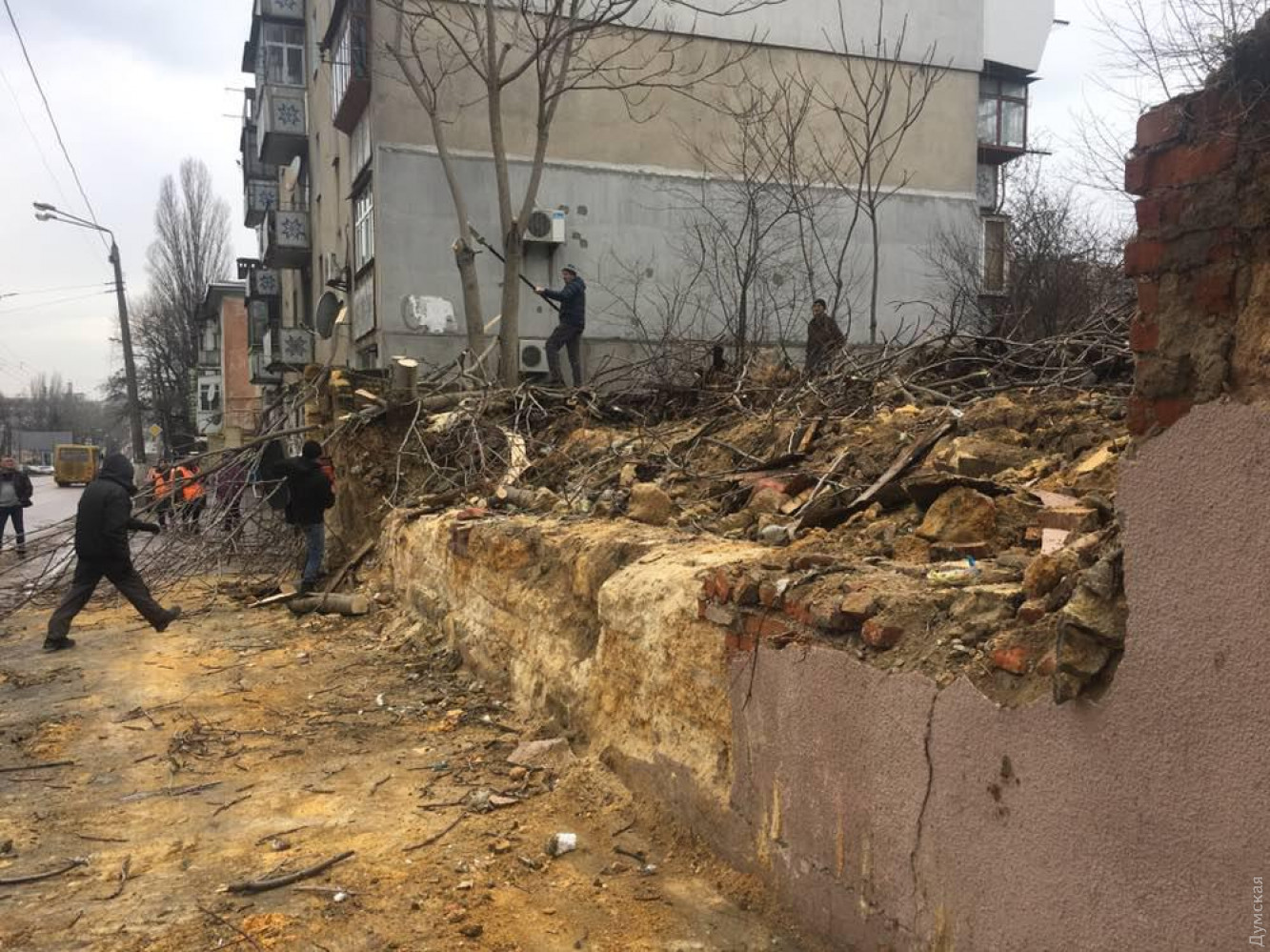 Остатки стены некогда жилого дома обрушились сегодня на Мельницкой улице Одессы, у №16. Об этом «Думской» сообщили очевидцы. Жертв и пострадавших нет. «Там когда-то был жилой дом, но лет пятнадцать назад жильцов отселили, дом разобрали, от него осталась стена, которая служила забором. Сегодня между 12:00 и 13:00 кусок этой стены рухнул, и оттуда вывалился строительный мусор», — говорит свидетель происшествия Константин. Местные говорят, что стена начала наклоняться несколько лет назад. Причина — старые деревья, которые оказывают давление на ракушечник своими корнями. Сейчас на месте работают коммунальщики. Они спиливают аварийные ветки и выкорчевывают самое большое дерево. Отметим, что здесь же находится вход в катакомбы. СМЕРТЬ РОСІЙСЬКИМ ОКУПАНТАМ! Помітили помилку? Виділяйте слова з помилкою та натискайте control-enter |