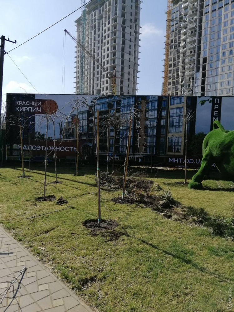 Возле жилкомплекса «Манхэттен», расположенного на Люстдорфской дороге, высадили больше десятка молодых каштанов. Отметим, в конце февраля здесь вырубили полтора десятка тополей. Предписание на эту вырубку выдал муниципальный департамент экологии, признав деревья аварийными. Застройщик, как и обещал, высадил вместо спиленных тополей крупномерные каштаны. СМЕРТЬ РОСІЙСЬКИМ ОКУПАНТАМ! Помітили помилку? Виділяйте слова з помилкою та натискайте control-enter Новини по цій темі: 13 червня 2025: Суд відібрав Дюковський сад Одеси у фірми-«пустушки» і повернув місту: за боргами ніхто платити не буде 30 травня 2025: Корабель Землі: на одеській Трасі здоров'я з'явилася величезна дзеркальна куля від Михайла Реви (фото) |