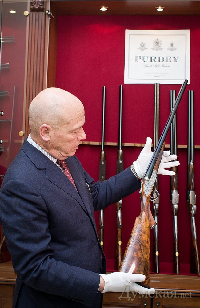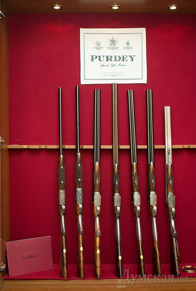 В одном из оружейных магазинов на Богдана Хмельницкого, открылась выставка крутой оружейной фирмЫ James Purdey & Sons Ltd, Gun & Rifle Makers, которая производит охотничьи ружья для европейских и азиатских монархов, аристократов и олигархии. Созданная за год до битвы при Ватерлоо компания с середины XIX века является официальным поставщиком британского королевского дома. Цена ружей, вышедших из-под рук мастеров Purdey, начинается от 25 тысяч долларов США, а некоторые образчики вполне можно обменять на новенький Rolls-Royce. И дело не только в гербах королевы, принца Уэльского и герцога Эдинбургского, которые наносятся на каждый «ствол», но и в качестве продукта. Кстати, из ружей Purdey постреливали и русские цари Николай I и Николай II, а также советские руководители Никита Хрущев, Алексей Косыгин и Леонид Брежнев.