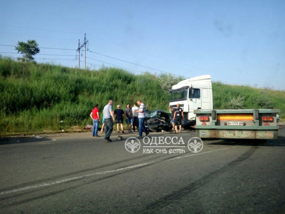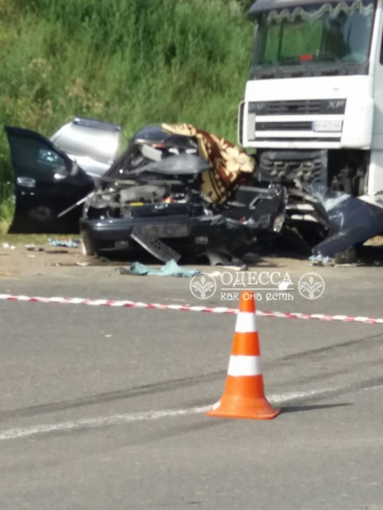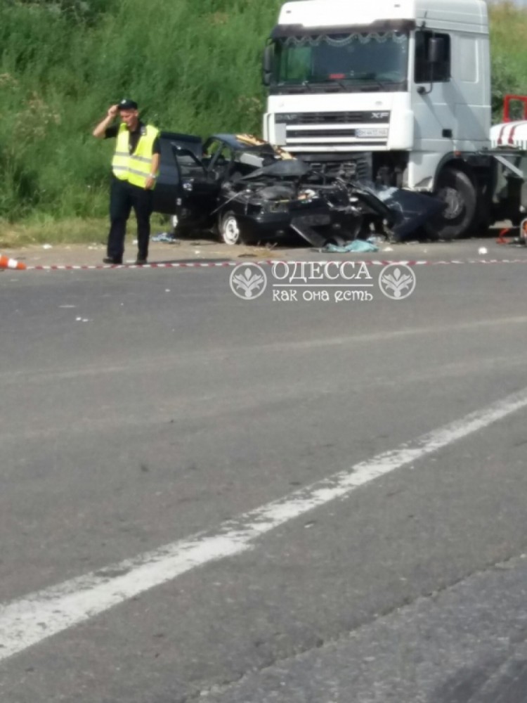 «Фура шла на подъем возле «Куяльника» со стороны поселка. Навстречу ехал автомобиль, между ними произошло столкновение, — сказала она. — Мальчик 10-12 лет погиб на месте». В салоне ВАЗа находились четыре человека, пассажиры и водитель получили травмы. На месте работают полицейские. Фото — «Одесский паблик»