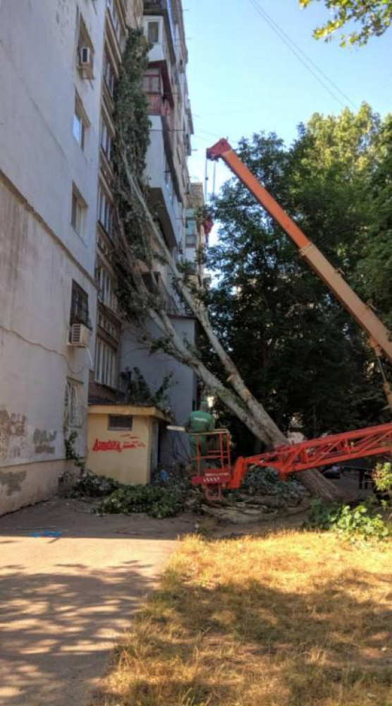Тополь рухнул на жилой дом на пересечении улиц Ивана и Юрия Лип и Героев Крут. Инцидент произошел сегодня, 6 августа. Упавшее дерево убрали со стены с помощью крана и распилили. По предварительным данным, никто не пострадал. Фото — «Одесский форум» и «Думская» СМЕРТЬ РОСІЙСЬКИМ ОКУПАНТАМ! Помітили помилку? Виділяйте слова з помилкою та натискайте control-enter |