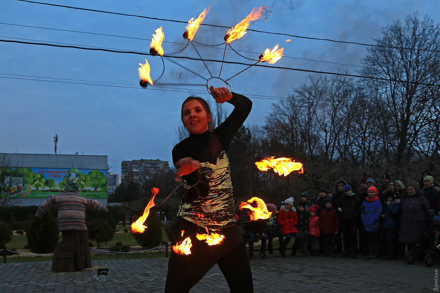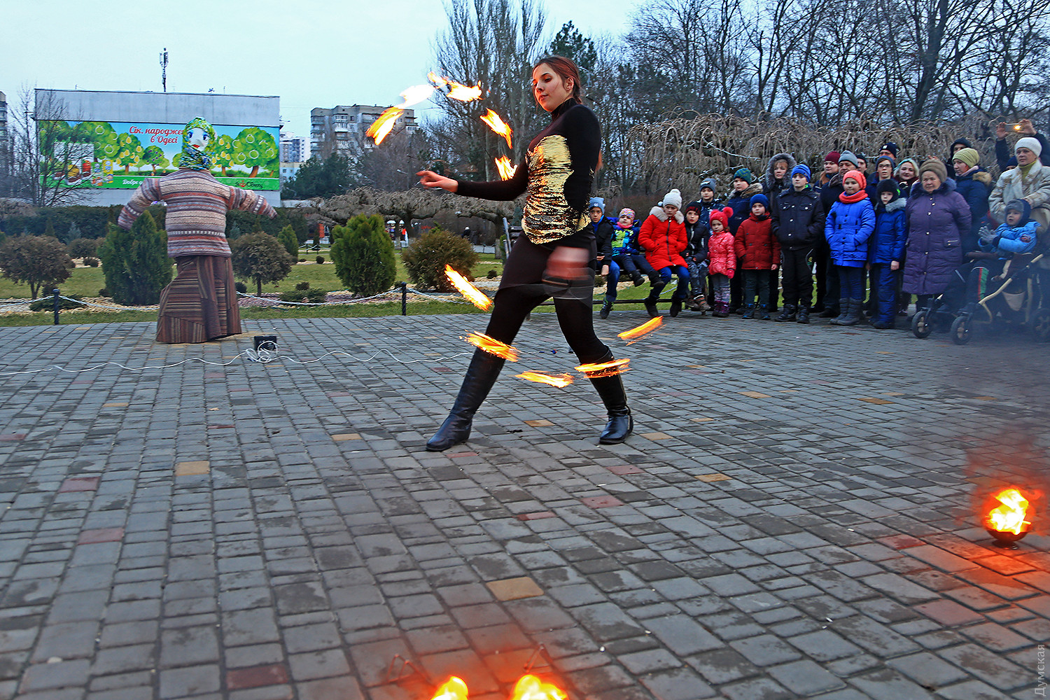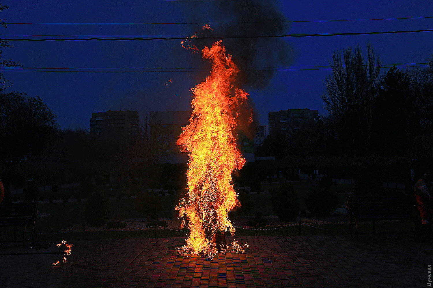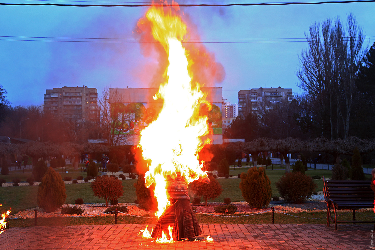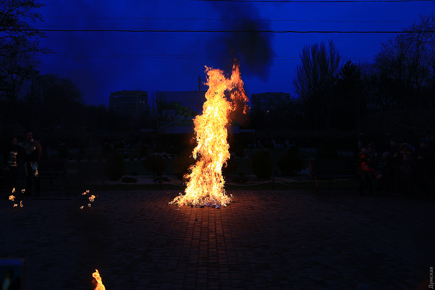 Сегодня вечером в одесском парке имени Горького проводили Масленицу. При большом стечении публики там провели старинный восточнославянский обряд — сожгли соломенное чучело зимы. Корреспондент «Думской» присутствовал на действе. Перед собственно сожжением было фаер-шоу, давшее много черного дыма. Потом заготовленное чучело облили горючей смесью и под вопли толпы подожгли. Все завершилось буквально за минуту. Фото Сергея Смоленцева СМЕРТЬ РОСІЙСЬКИМ ОКУПАНТАМ! Помітили помилку? Виділяйте слова з помилкою та натискайте control-enter |