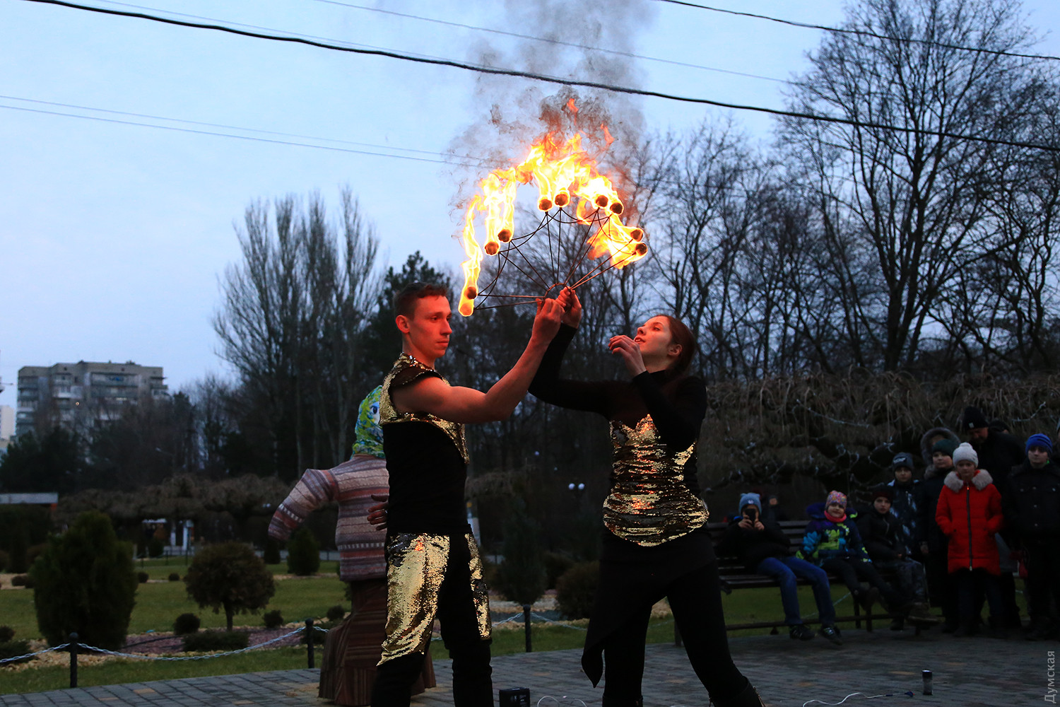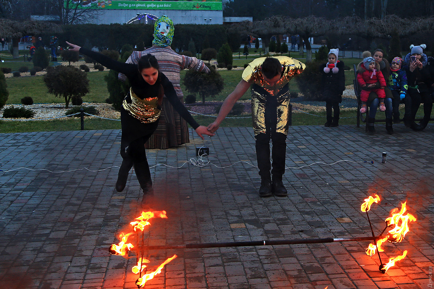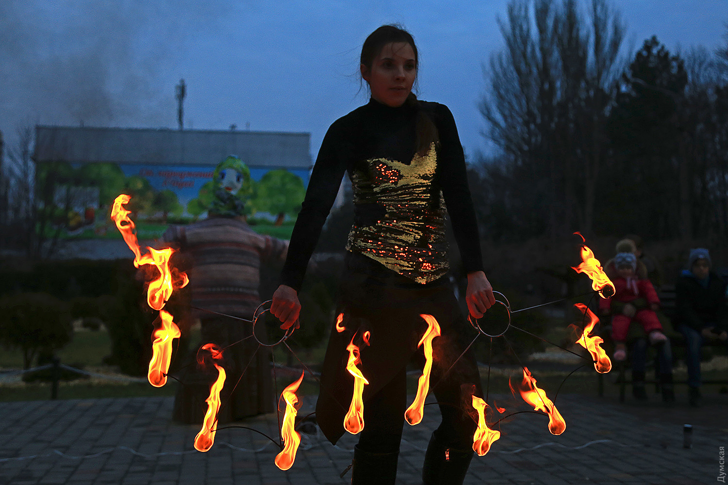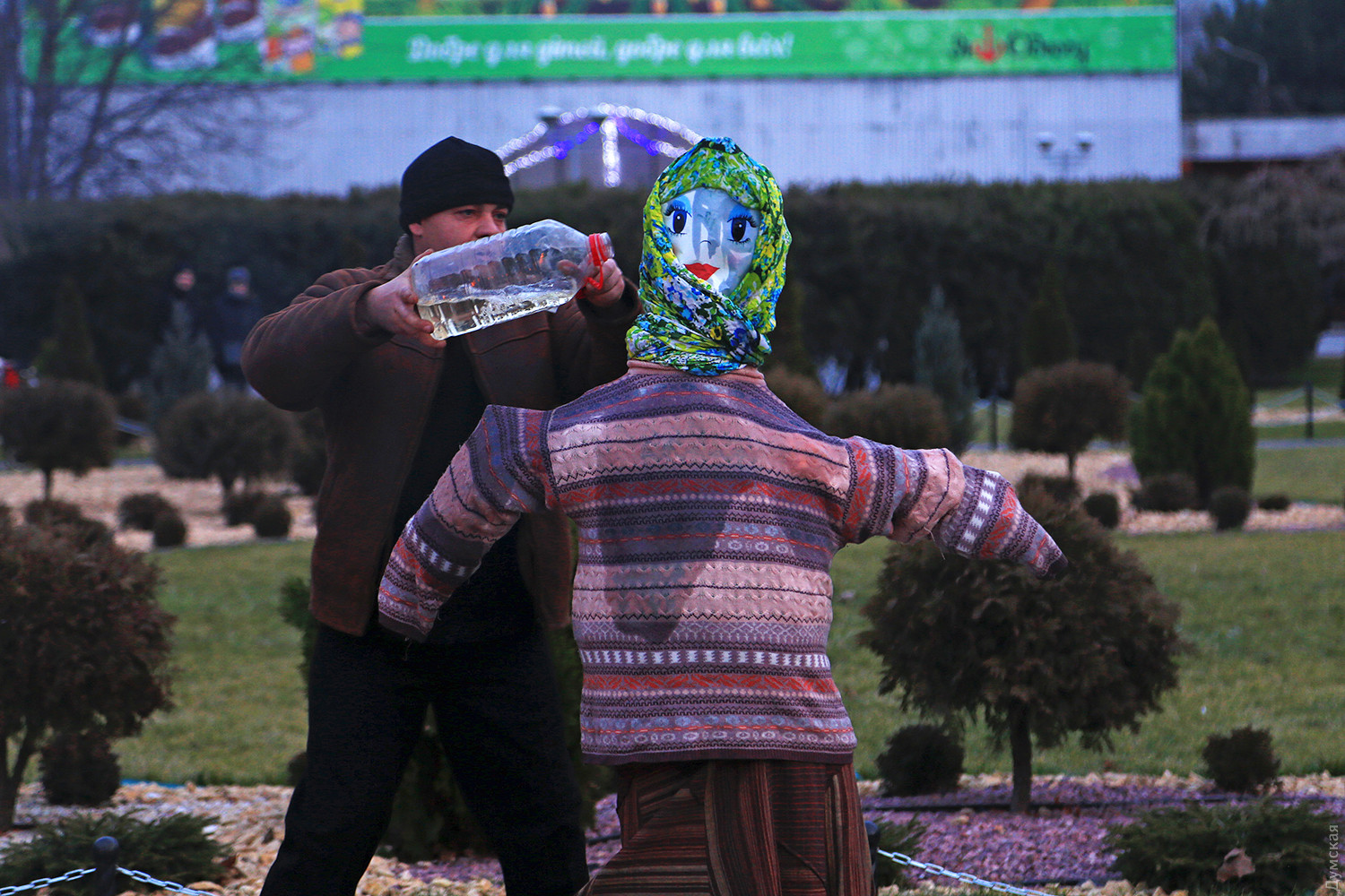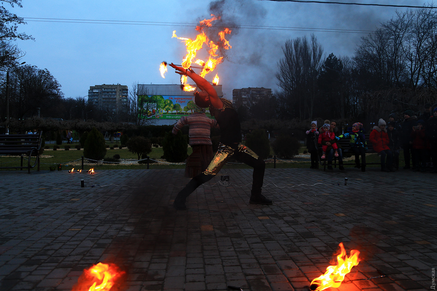 Сегодня вечером в одесском парке имени Горького проводили Масленицу. При большом стечении публики там провели старинный восточнославянский обряд — сожгли соломенное чучело зимы. Корреспондент «Думской» присутствовал на действе. Перед собственно сожжением было фаер-шоу, давшее много черного дыма. Потом заготовленное чучело облили горючей смесью и под вопли толпы подожгли. Все завершилось буквально за минуту. Фото Сергея Смоленцева СМЕРТЬ РОСІЙСЬКИМ ОКУПАНТАМ! Помітили помилку? Виділяйте слова з помилкою та натискайте control-enter |