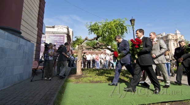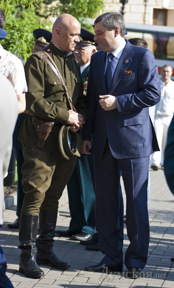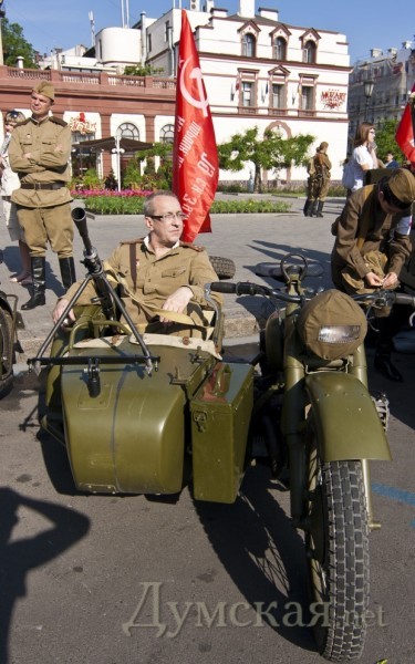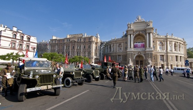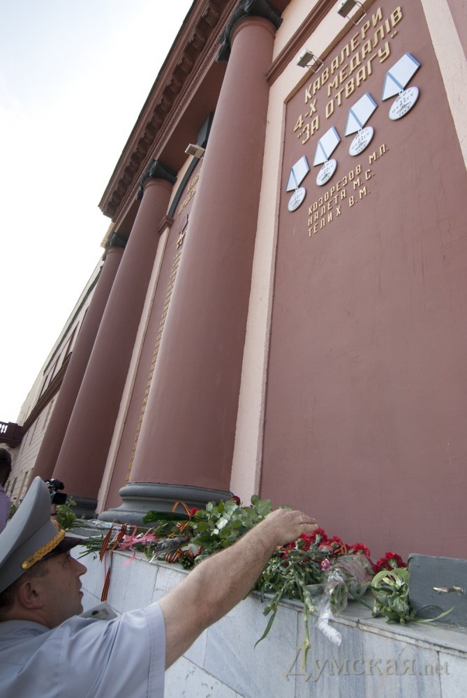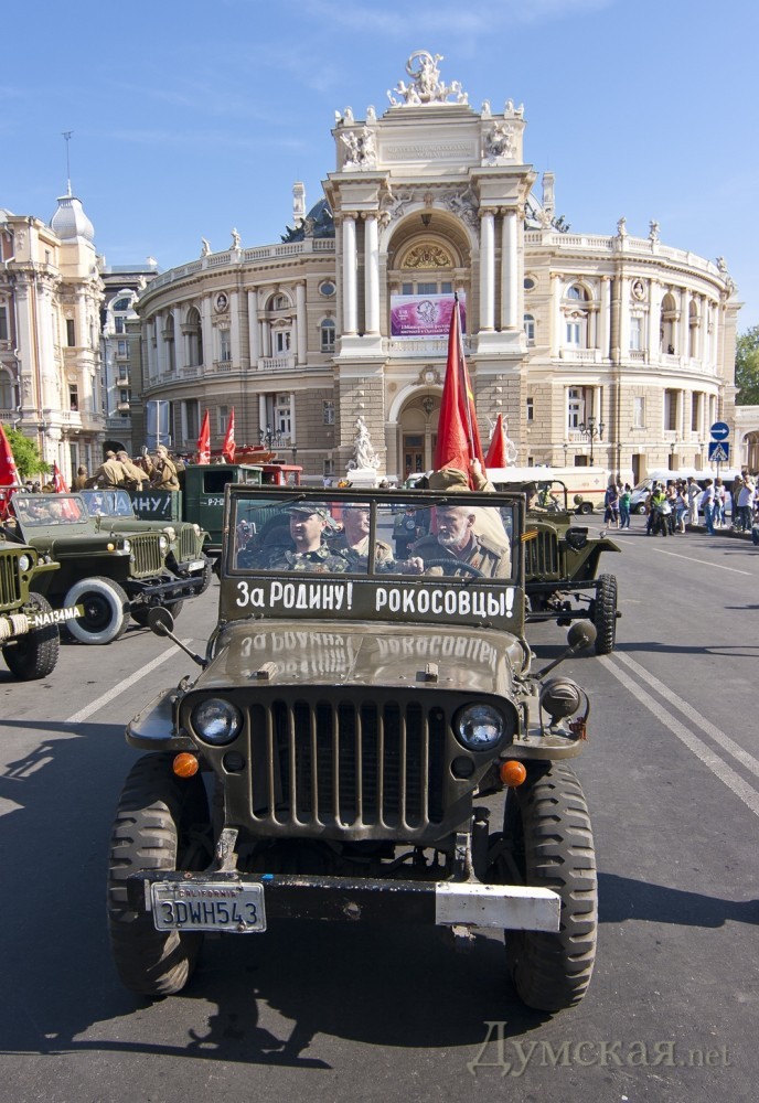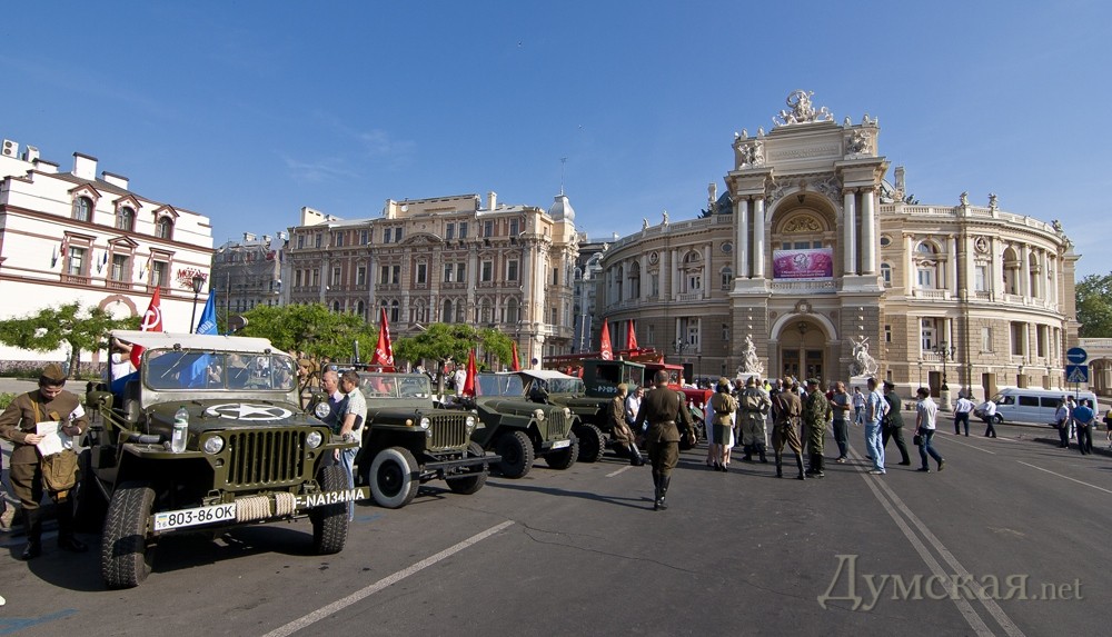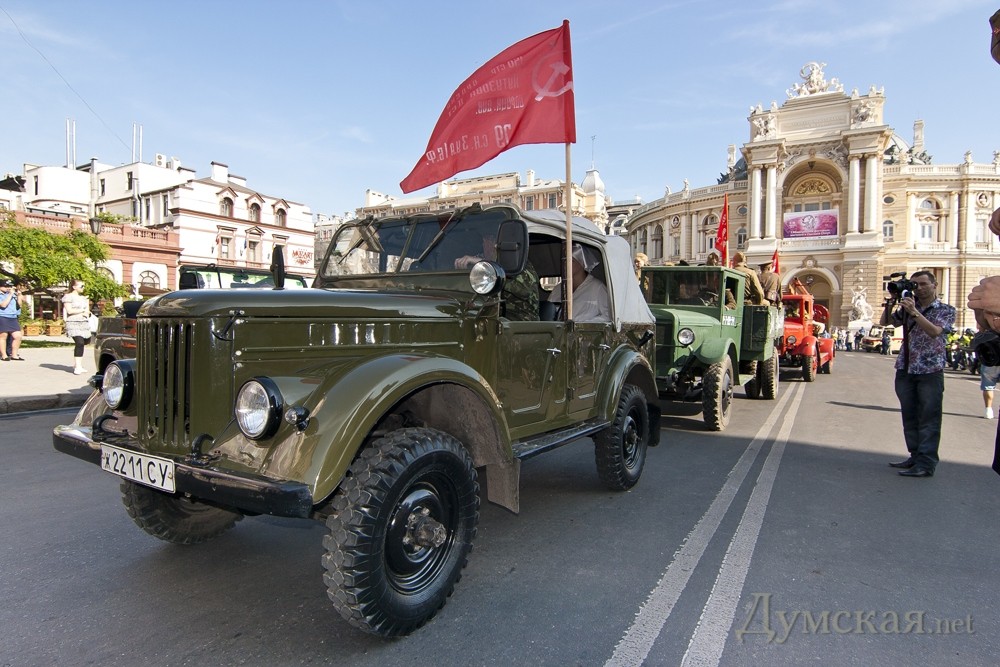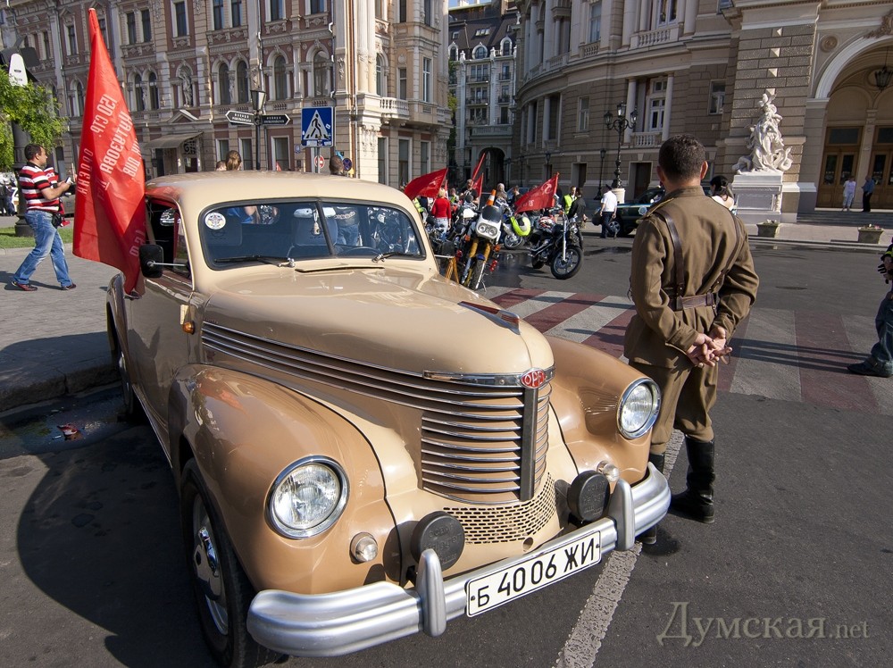 Сразу после открытия новых имен на Стене Героев, по театральной площади прошла колонна байкеров и ретро-авто. В частности, среди прочих раритетов, на площади появились ЗИС-5, джип «Willys», «Wanderer», «Opel Kapitаn» и ГАЗ-67. Все эти машины находятся в одной частной коллекции у одессита Сергея Сидоренко. Справка: генерал-майор авиации Шадрин Геннадий Алексеевич. Начал войну в августе 1942 года. Совершил 465 боевых вылетов, в том числе – 75 на штурмовку и бомбардировку вражеских войск. В 76 боях сбил 14 самолетов противника. 29 июня 1945 года за мужество и воинскую доблесть, проявленные в боях с врагами, гвардии майор Шадрин был удостоен звания Героя Советского Союза. Награждён орденами: Ленина (дважды), Красного Знамени (пять), Александра Невского, Отечественной войны 1-й степени (дважды), Красной Звезды (дважды). После войны Геннадий Алексеевич продолжал службу в военно-воздушных силах. В 1967 году удостоен звания «Заслуженный военный лётчик СССР». С 1979 года генерал-майор авиации Г. А. Шадрин — в запасе. (Справочно: похоронен на 2-ом городском кладбище. Будет перезахоронен на Аллее Славы). Гвардии полковник Григорий Сергеевич Антонов. Прошел всю войну, дважды был ранен. Удостоен звания Героя Советского Союза за форсирование Днепра в октябре 1943-го года, когда 180-й полк под его командованием одним из первых форсировал реку и захватил плацдарм на рубеже Мишурин Рог — Куцеволовка. Пятнадцать суток гвардейцы отбивали яростные контратаки противника, а 15 октября 1943 года перешли в наступление и прорвали оборону противника. Полковник Борщев Сергей Тимофеевич. К апрелю 1945 года Борщёв совершил 132 вылета на разведку и штурмовку железнодорожных эшелонов, переправ, скоплений техники и живой силы врага. Указом Президиума Верховного Совета СССР от 15 мая 1946 года гвардии подполковник Сергей Борщёв был удостоен звания Героя Советского Союза с вручением ордена Ленина и медали «Золотая Звезда». Был также награждён пятью орденами Красного Знамени, орденами Александра Невского и Красной Звезды. Бровченко Иван Никонович. В марте 1944 года был призван в армию, а уже в сентябре этого же года за «мужество, отвагу и героизм, проявленные в борьбе с немецко-фашистскими захватчиками» при освобождении Украины и Румынии красноармеец Иван Бровченко был удостоен звания Героя Советского Союза. Фото: Гиманов Александр