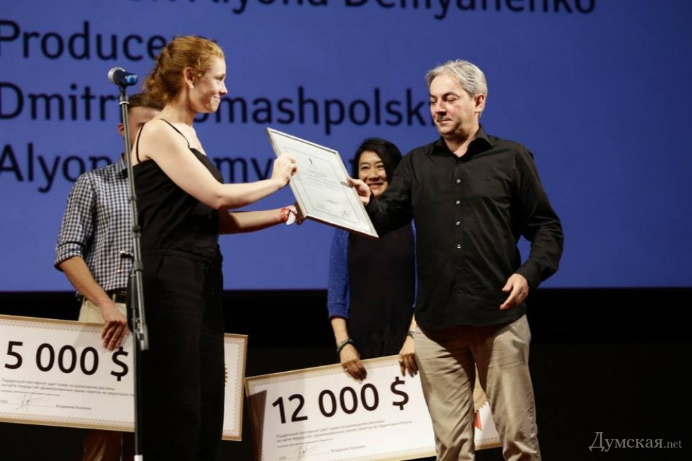 18 июля в фестивальном дворце ОМКФ раздали первые награды 5-го Одесского кинофестиваля — «Золотой Дюк» за Лучший украинский короткометражный фильм по версии международного жюри национальной конкурсной программы, приз за Лучший актерскую работу, впервые вручаемый в этом году, призы за Лучшие проекты Питчинга и Work in Progress и другие. Как сообщает пресс-служба ОМВФ, церемония начались с минуты молчания в память о погибших пассажиров Boeing 777 Malaysia Airlines 17 июля, а также в память об известном украинском актере Виталие Линецком, скончавшемся на 43-м году жизни. В своем выступлении Виктория Тигипко, президент ОМКФ, отметила: «2014 — переломный год как для страны, так и для киноиндустрии. Но нужно смотреть в будущее отрасли, которая становиться на ноги. Четыре года поддержки киноиндустрии дали существенные результаты: снято 57 полнометражных фильмов, мы получили беспрецедентное число заявок в национальную конкурсную программу — 130. Несмотря на тяжелую финансовую и эмоциональную ситуацию, в этому году были введены новые награды национального конкурса — приз за лучшую актерскую работу и лучший проект Work in Progress». Виктория также заявила, что в связи с крушением пассажирского самолете в Донецкой области 17 июля будут внесены изменения в традиционную церемонию закрытия фестиваля: гости проследуют в зал без соблюдения светского протокола и музыкального сопровождения, организаторы отменят торжественный прием и вечерние развлекательные мероприятия. Лучшим украинским короткометражным фильмом по безоговорочному решению жюри была названа работа Марии Кондаковой «Листопад». Первый «Золотой дюк» конкурсной программы юбилейного ОМКФ и сертификат на 10 тыс. гривен режиссеру и продюсеру фильма вручила заместитель председателя правления ТАСкомбанк — Рината Березникова. «Это большая честь находится на этой сцене. Когда я впервые приехала на фестиваль в качестве студентки Летней киношколы, я смотрела, как получают награды и думала про себя, что я тоже так хочу. И вот спустя пару лет - вуаля! Спасибо!», — поблагодарила всех победительница. Международное жюри национальной конкурсной программы выдало сразу три специальных диплома: оператору Сергею Михальчуку за визуальное решения фильма «Поводырь», режиссеру психологического триллера «Зеленая кофта» Владимиру Тихому за изображения диалога в обществе и копродукции Украина-Турция «Люби меня» режиссеров Марины Эр Горбач и Мехмета Бахадыра Эра. Приз в новой номинации национального конкурса «Лучшая актерская работа» поделили между двумя актерами: Станиславом Бокланом за роль в фильме «Поводырь» и Усханом Чакишем за роль в фильме «Люби меня». В рамках профессиональной секции конкурс на лучший проект Питчинга полнометражного художественного фильма, производства Украины или копродукции с Украиной, выиграл проект «Когда падают деревья» режиссера Марыси Никитюк и продюсеров Игоря Савиченко и Дариуша Яблонського. Победителям вручили денежное вознаграждение в размере 50 тыс. гривен. Особым упоминанием экспертное жюри наградило совместный проект Владимира Филиппова с Одесской киностудией «Александр Довженко. Одесский дебют». Два фильма, представленные в рамках программы Work in Progress, были отмечены наградами от партнеров профессиональной секции ОМКФ. Жури международной федерации кинопрессы (FIPRESCI) так