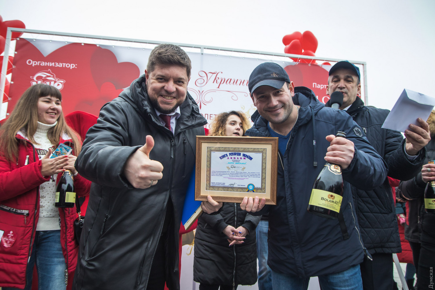 Национальный рекорд по дальности полета пробки от шампанского установили сегодня на пляже Ланжерон в Одессе. Попробовать свои силы в стрельбе из бутылки игристого напитка решились почти 250 одесситов. Организатором веселой акции выступил одесской дельфинарий «Немо». Игристое вино для рекорда предоставил партнер мероприятия ТМ Болград. «Уже второй год подряд одесситы объединяются, приходят на набережную и участвуют в установлении рекордов, — рассказал сооснователь дельфинария и автор идеи конкурса Сергей Келюшок. — Очень приятно видеть, когда несколько сотен человек вместе смеются, радуются и, несмотря на февральский холод, всем на душе становится тепло, все забывают о проблемах и хотят признаться в любви друг другу». По словам Сергея, сотрудники дельфинария несколько дней тренировались, чтобы составить должную конкуренцию участникам соревнования, однако и близко не приблизились к рекордному результату. По итогам конкурса лучший результат показал одессит Николай Петку. Мужчина отправил пробку на 23,7 метров. Любопытно, что борьба велась на сантиметры — расстояние между призовой тройкой составляло всего 10 см. По словам рекордсмена, который с его слов больше любит пиво, никакой специальной техники стрельбы шампанским у него нет, а победа стала полной неожиданностью. «Это очень неожиданно, мы просто пришли с супругой прогуляться по набережной и установили рекорд, — рассказал Николай. — Я очень редко пью шампанское и еще реже его открываю, но накануне прочитал, что нужно его нагреть и перед выстрелом держал под курткой». Рекорд Украины зафиксировал представитель Национального реестра рекордов страны. По словам Дмитрия Яицкого, одесситам еще есть куда стремиться — мировой рекорд, поставленный в Америке в 1988 году, составляет 54 метра. «Должен признаться, что находиться на линии было довольно опасно, пробки прямо свистели над головой, — шутит Дмитрий Яицкий. — Но все закончилось хорошо. Мы фиксировали все пробки, которые перелетали за дистанцию в 20 метров. Это очень хорошее и позитивное мероприятие и фиксировать такие рекорды — настоящее удовольствие». В свою очередь, директор по развитию отельного комплекса «Немо» Фазиль Аскеров рассказал, что выбор в пользу соревнования по дальности полета пробки был не случайным. «На наш взгляд, это самое зрелищное и эмоциональное соревнование и мы с удовольствием его провели, — признался Фазиль. — Обещаем, что в следующем году мы придумаем еще более интересное развлечение». Все участники соревнований получили пригласительные на шоу, а победитель — плавание с дельфинами. СМЕРТЬ РОССИЙСКИМ ОККУПАНТАМ! Заметили ошибку? Выделяйте слова с ошибкой и нажимайте control-enter |