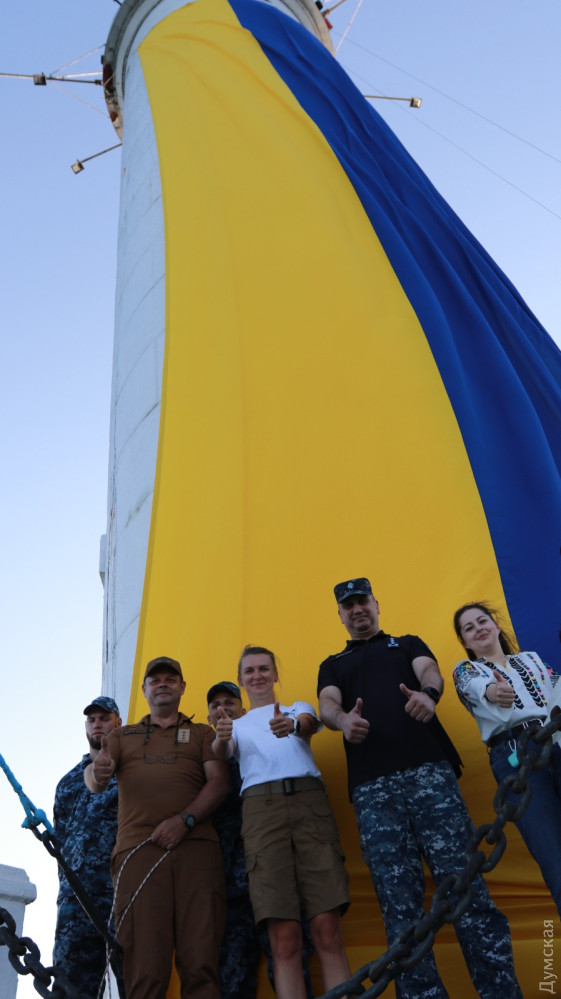 На честь Дня державного прапора на Воронцовському маяку в Одесі підняли жовто-синій стяг розміром 4,5 на 18 метрів. В урочистому заході взяв участь командувач Військово-морських сил України віце-адмірал Олексій Неїжпапа. Також на маяку були присутні військовослужбовці ВМСУ і морської охорони, співробітники Держгідрографії. Зазначимо, урочисте підняття величезного прапора України на одеському маяку відбувається вже четвертий рік поспіль, його організовують представники «Вишиванкового фестивалю». Помітили помилку? Виділяйте слова з помилкою та натискайте control-enter |