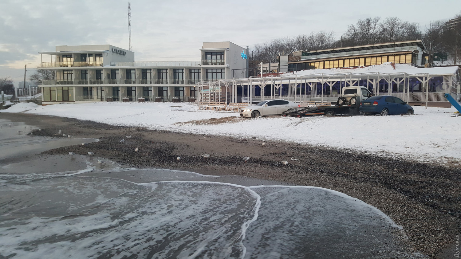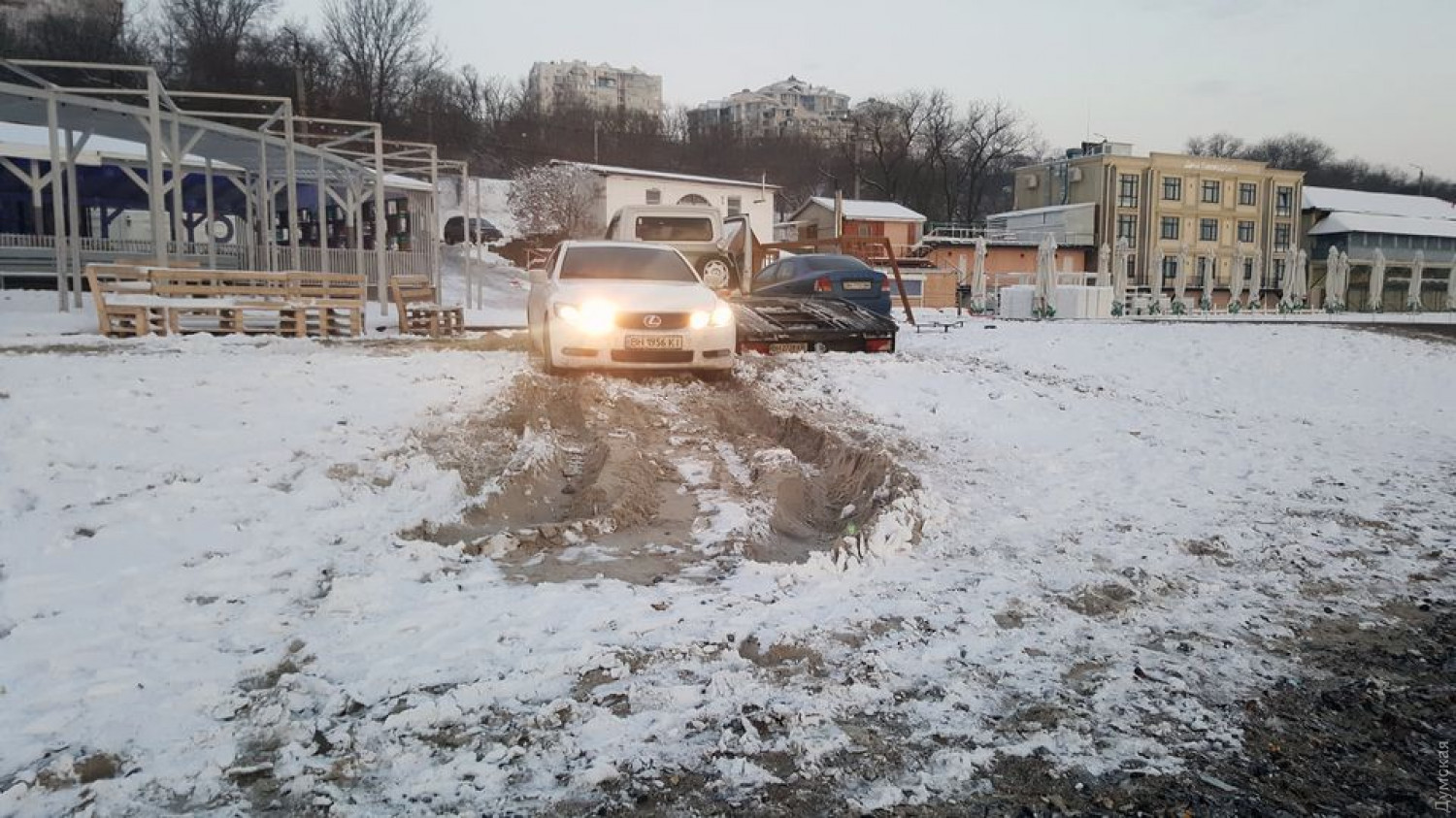 На одесском пляже застряли две легковые машины и эвакуатор