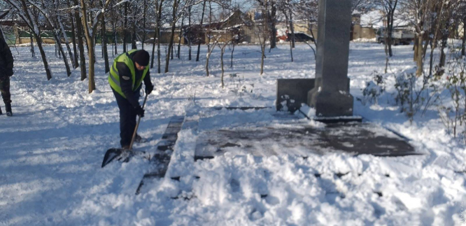Коммунальщики поставили плиту на место и убрали памятник от снега.